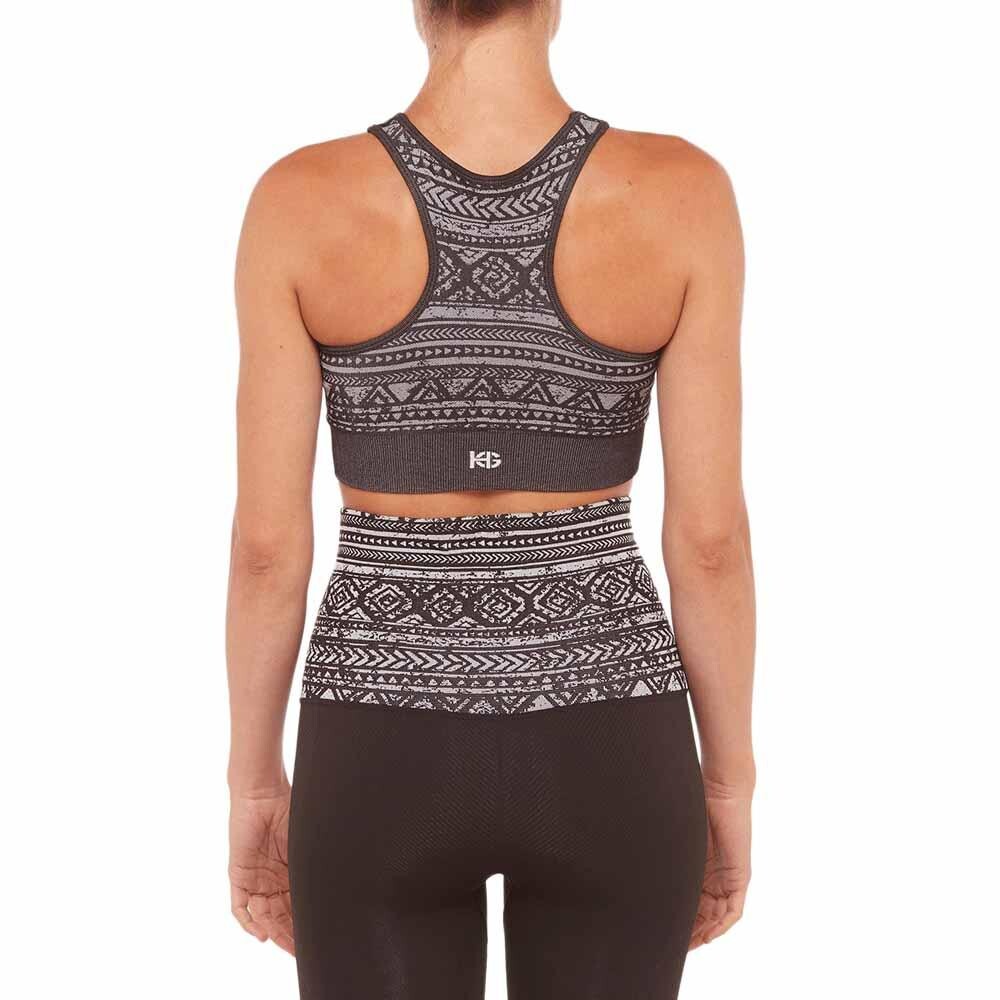 Двухслойный спортивный бюстгальтер с приклеенным вырезом и этническим дизайном.