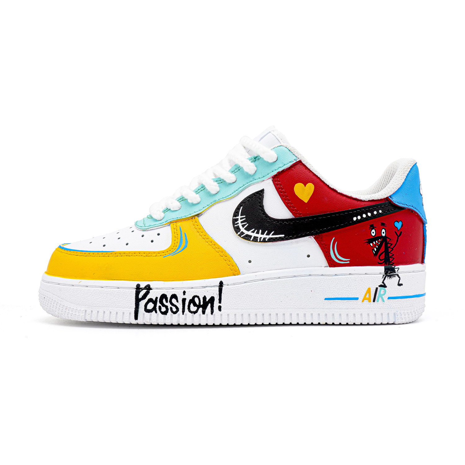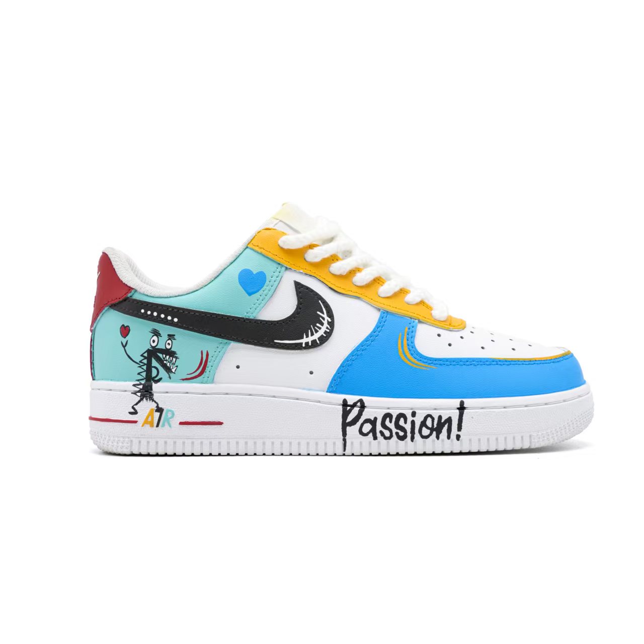 Это оригинальные кроссовки Nike Air Force 1. Дизайн использует несколько цветов, чтобы подчеркнуть их уникальность.