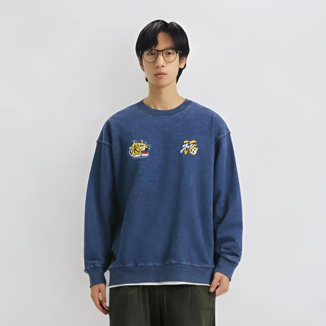 Вышитый тигр свитшот с круглым вырезом Alpha Industries, синий