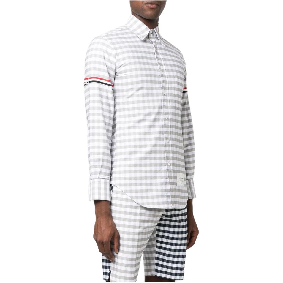 Рубашка в полоску RWB в клетку с пуговицами THOM BROWNE, серый