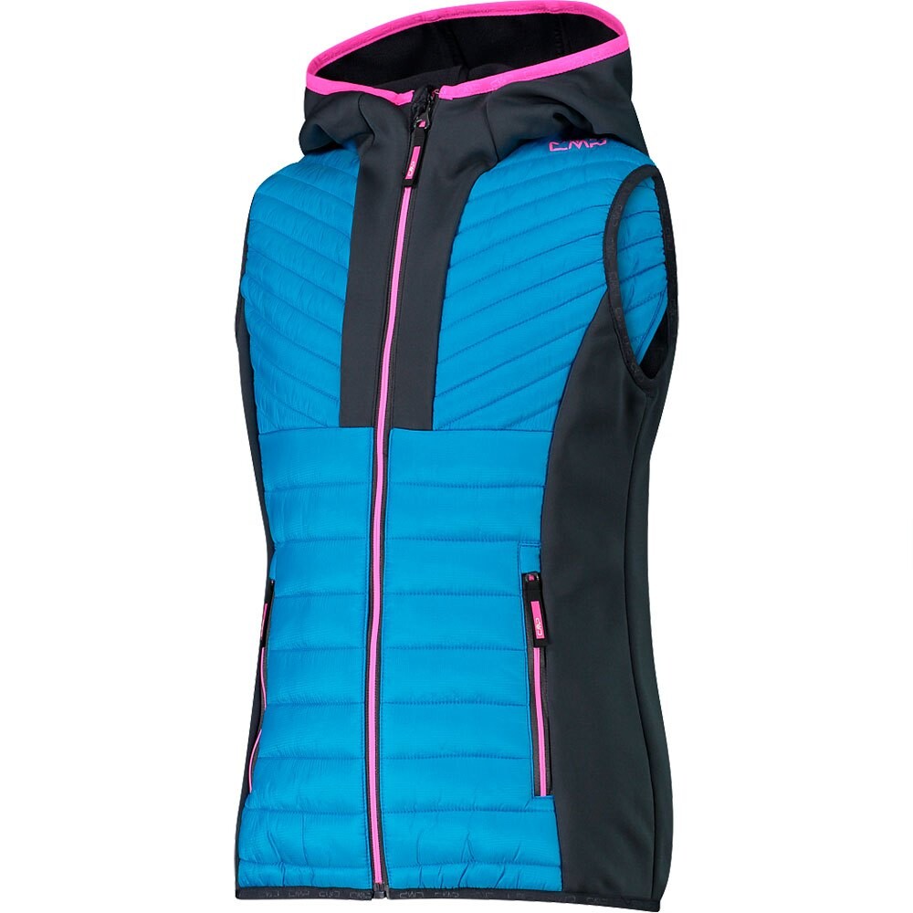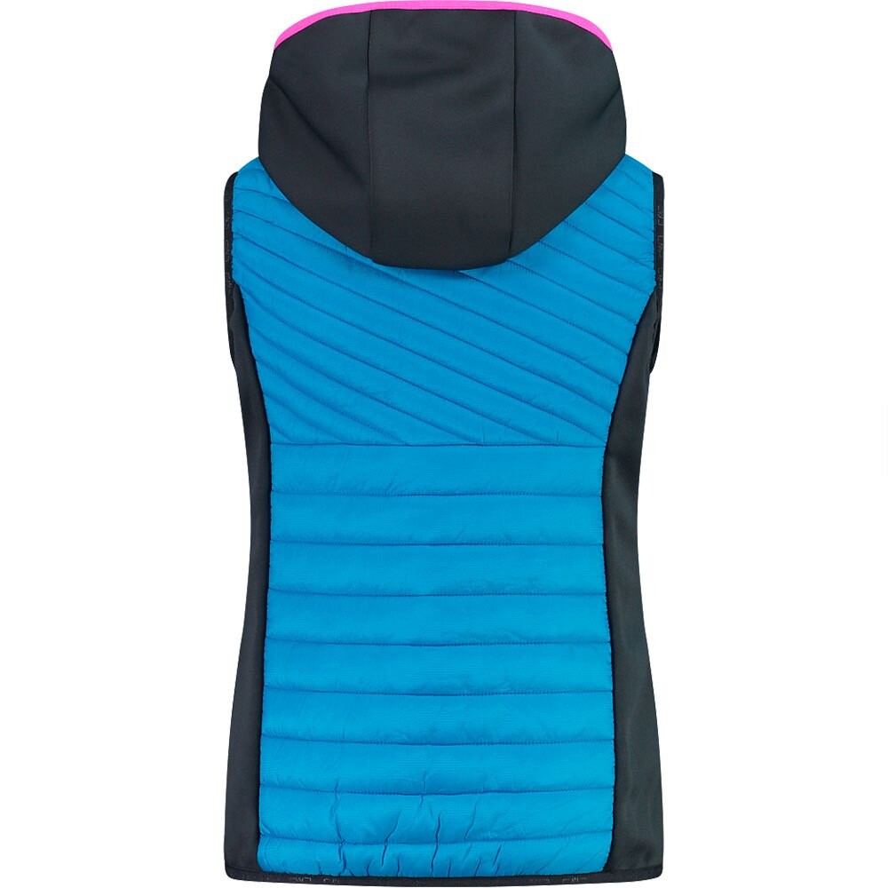 Гибридный жилет, сочетающий в себе утеплитель Feel Warm Flat спереди и сзади, ткань рипстоп в области бедер и капюшона.