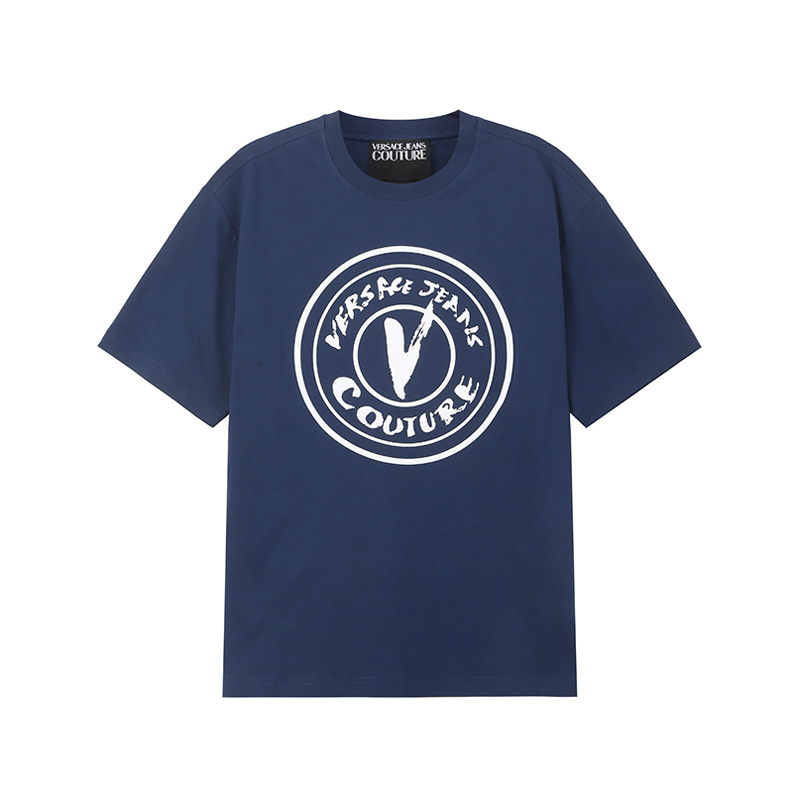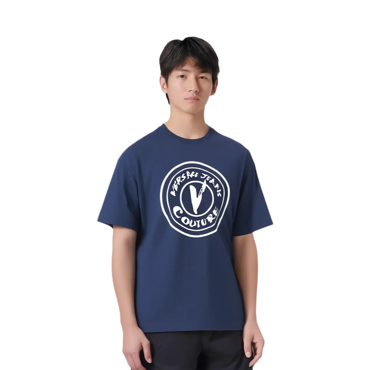 Футболка с принтом логотипа VERSACE JEANS COUTURE, темно-синий