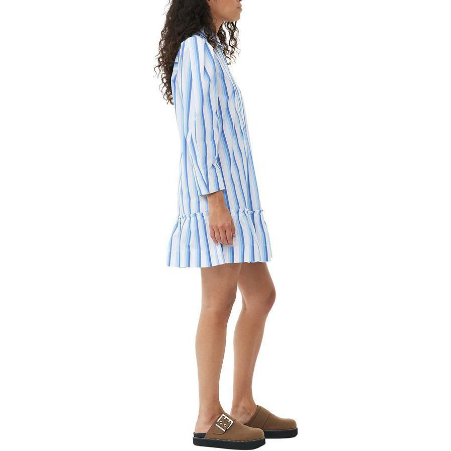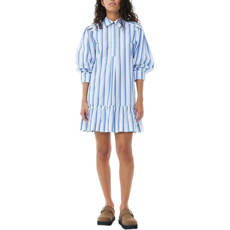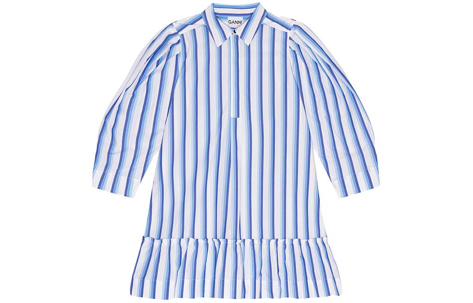Полосатое платье-рубашка с расклешенным подолом GANNI, серебро