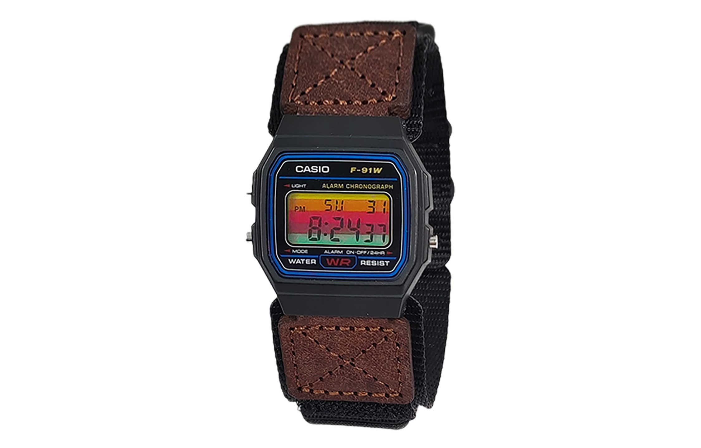 Цвет циферблата: черный циферблат с разноцветными горизонтальными полосами и разноцветным безелем