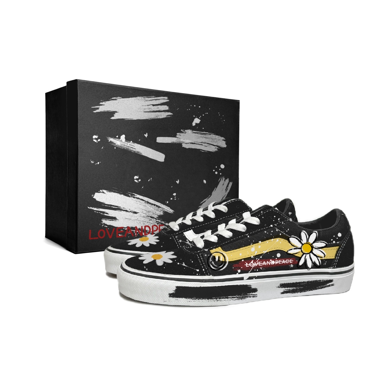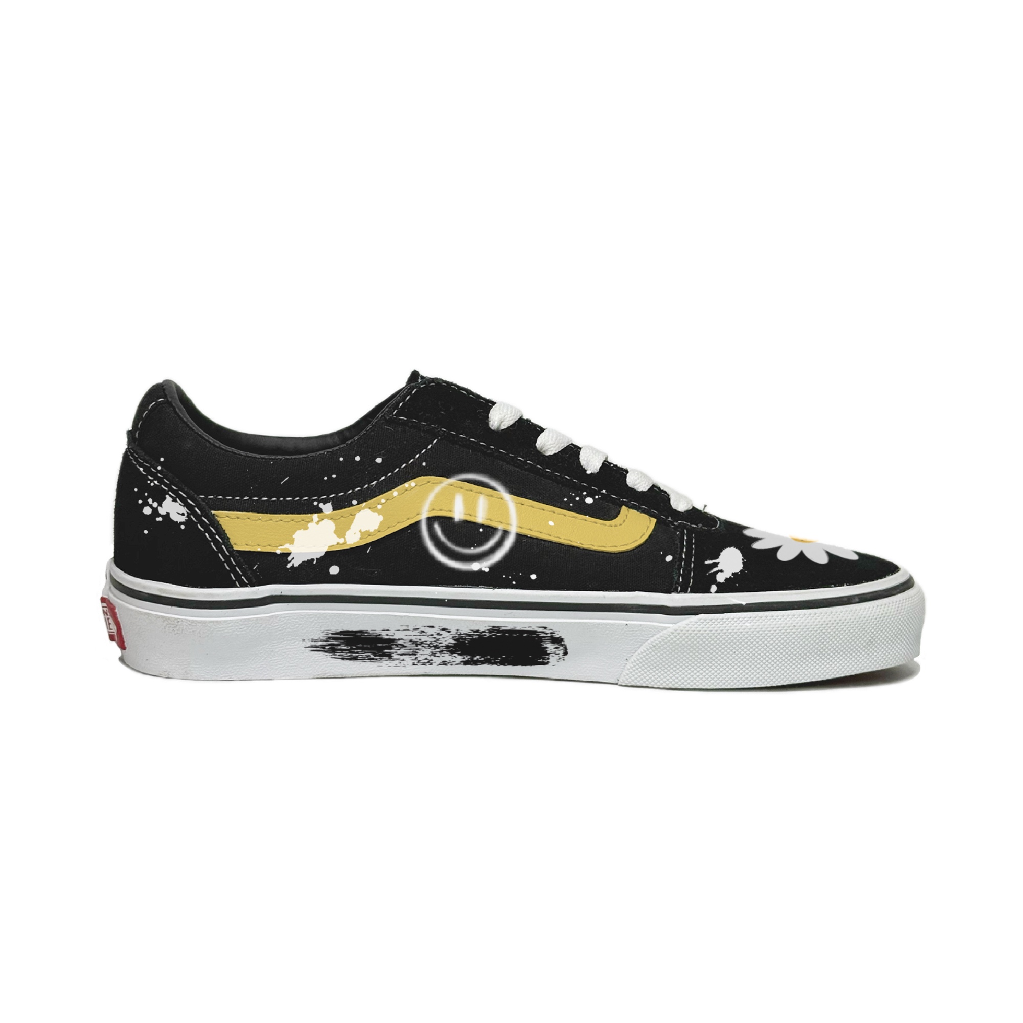 Vans Old Skool Small Daisy, Hand Drawn, Box Low top Skateboard Shoes Unisex Yellow Black