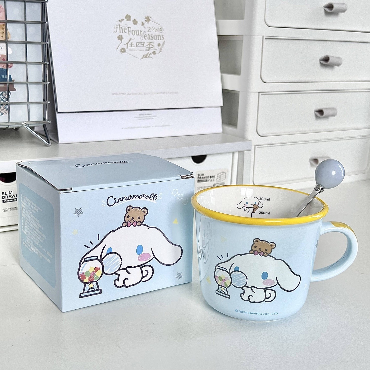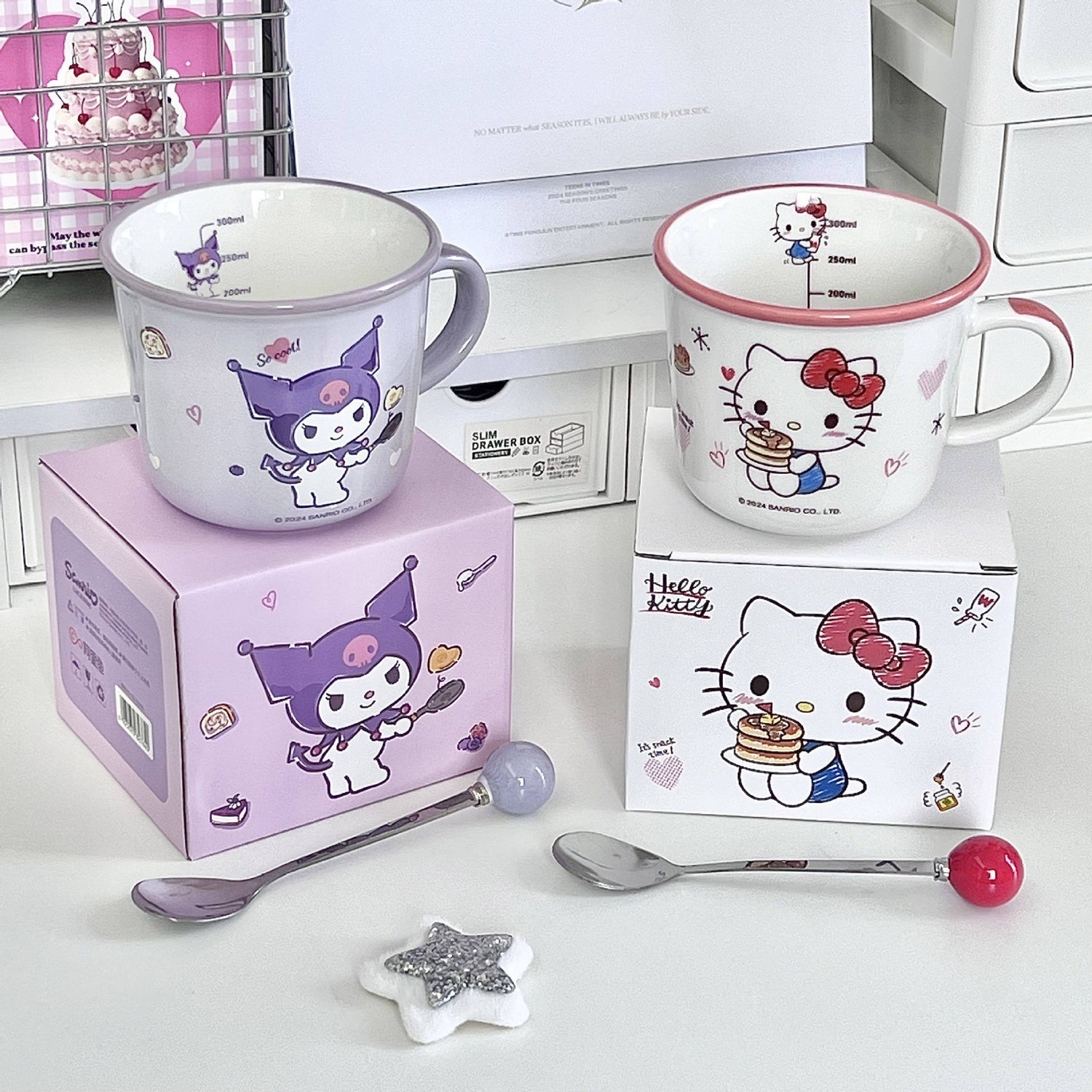 Кружка Hello Kitty 340 мл Sanrio, Hello Kitty Ceramic Mug+Shopping Bag+Cup Brush Sticker