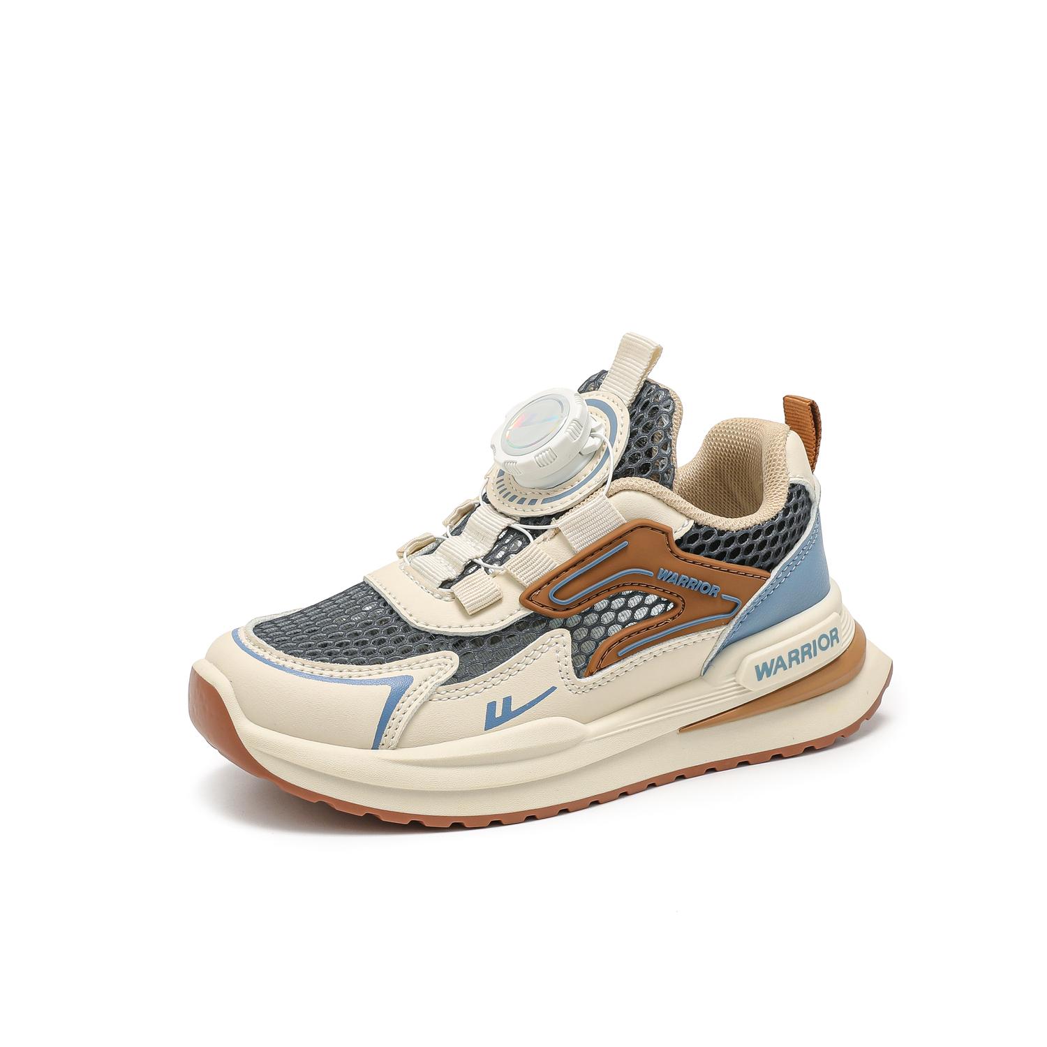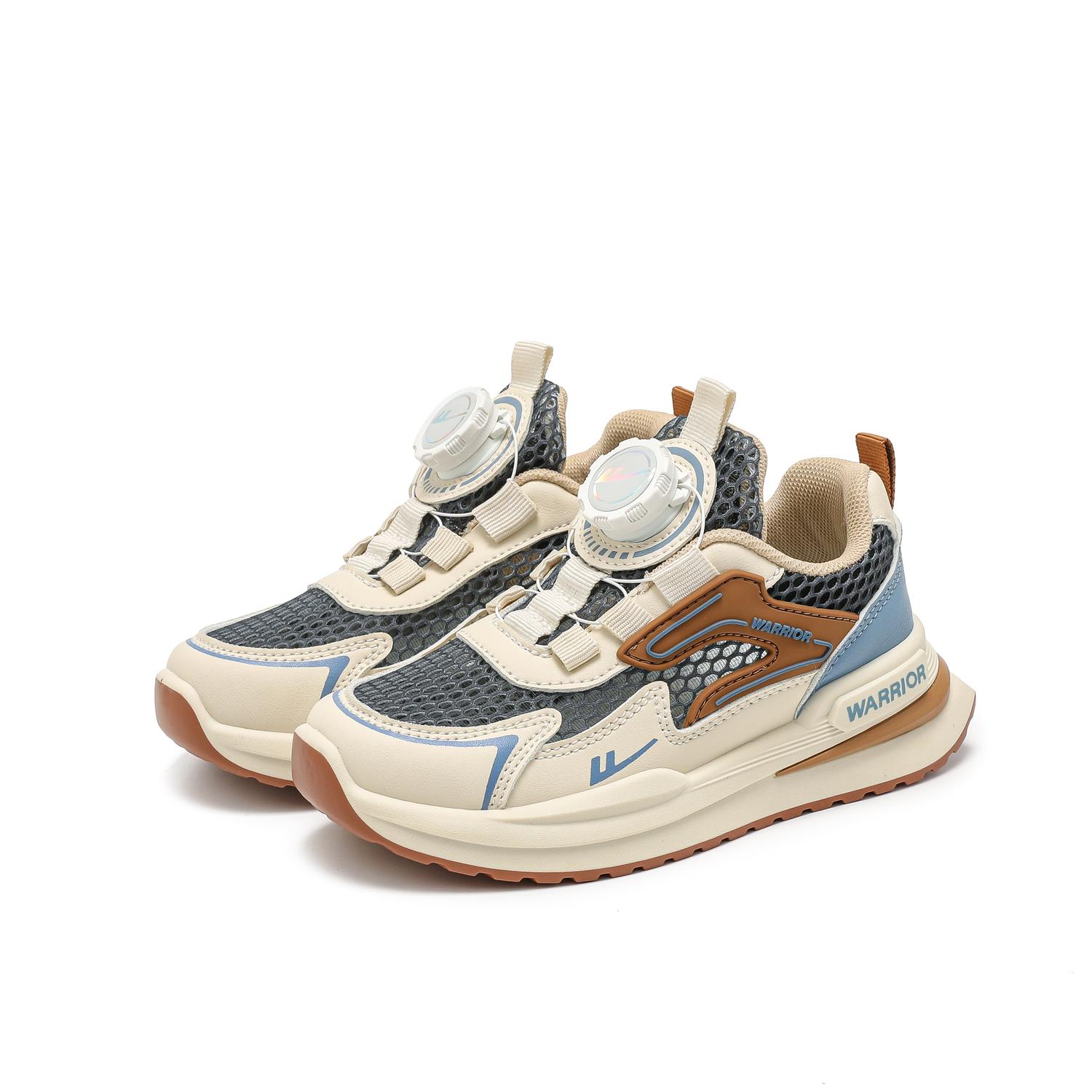 Детские противоскользящие дышащие кеды WARRIOR, бежевый/синий