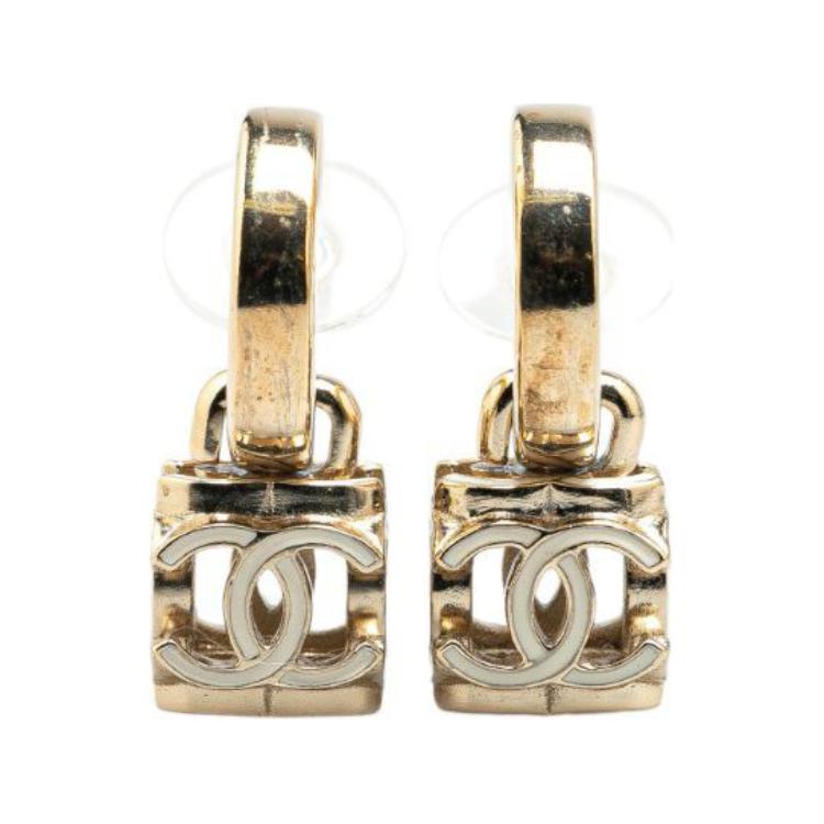 Пластина и эмаль cc куб подвес клипса костюмные серьги CHANEL