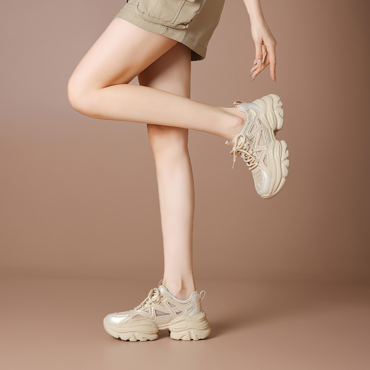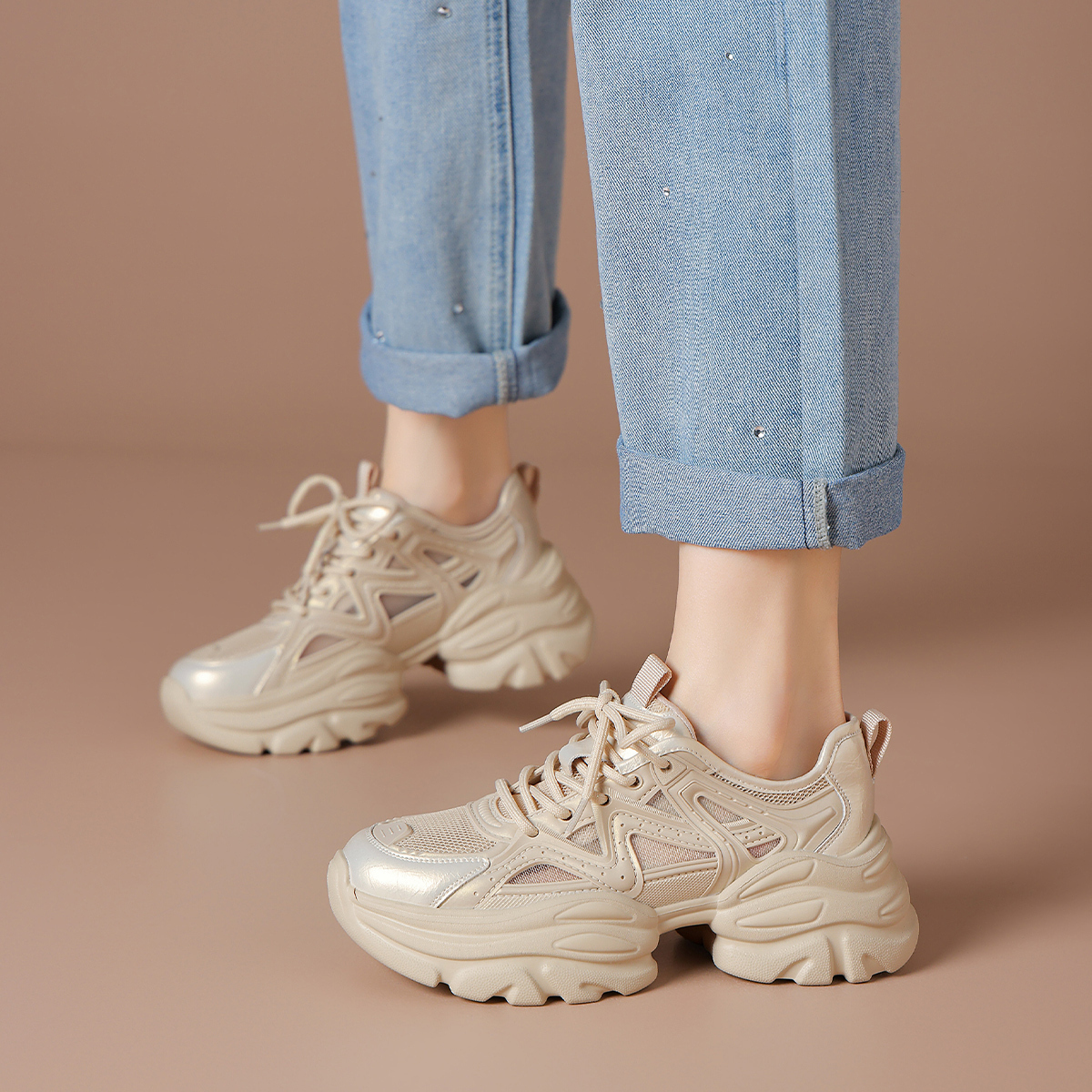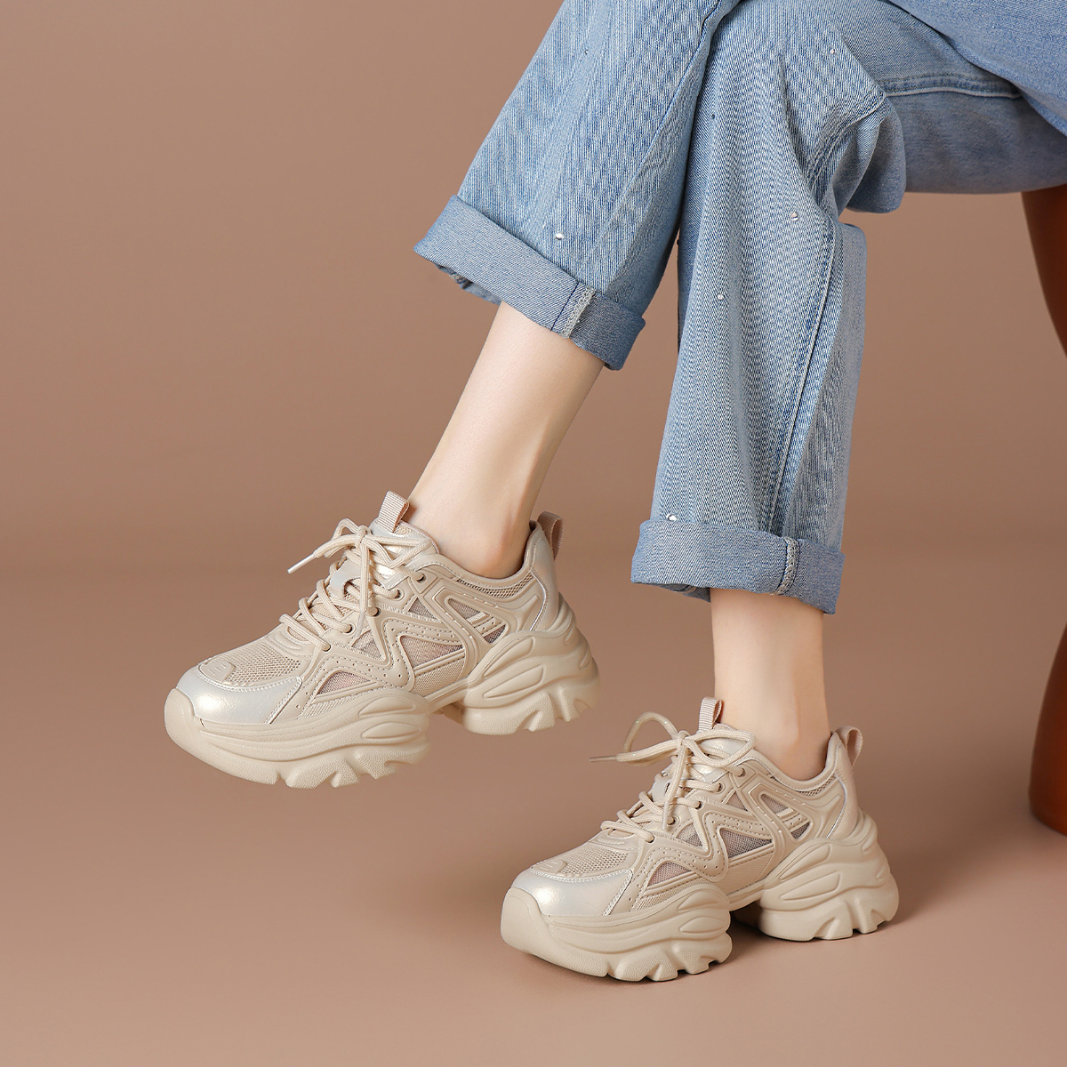 Дышащие утолщенные кроссовки на платформе для увеличения роста Low Top BOERDIQI, Apricot