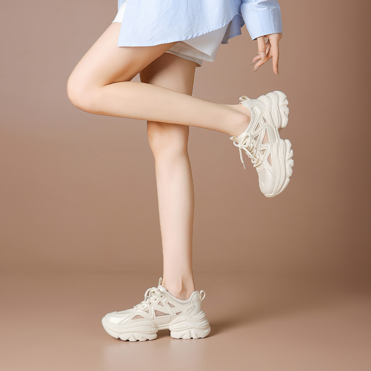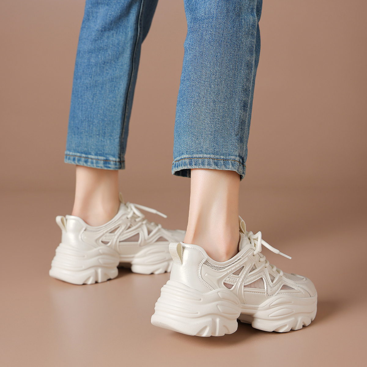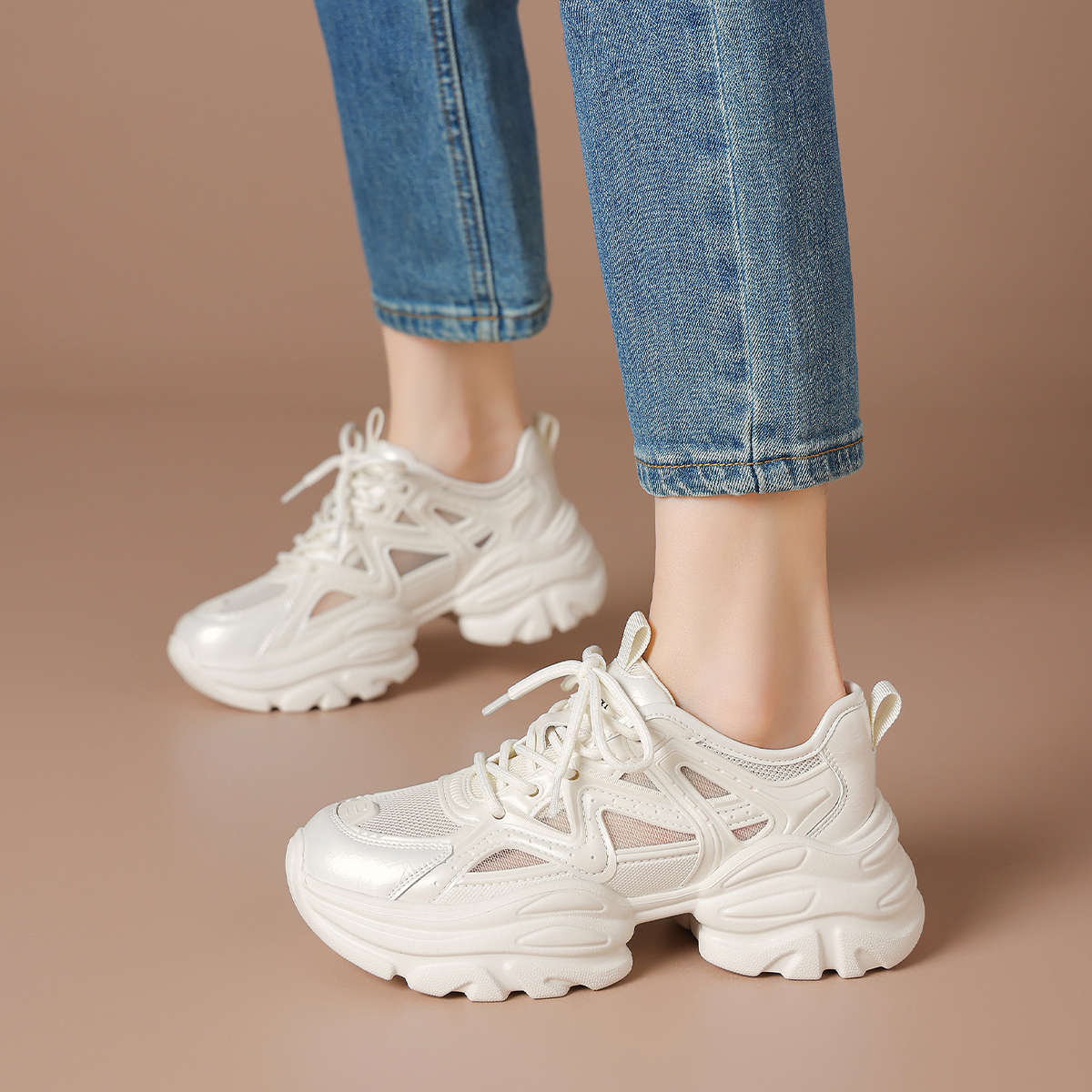 Дышащие утолщенные кроссовки на платформе для увеличения роста Low Top BOERDIQI, Apricot