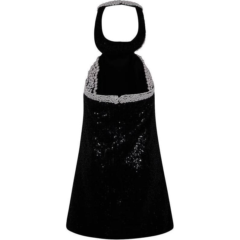 Мини-платье с жемчужной отделкой Bouclé Self-portrait, черный 21 836₽