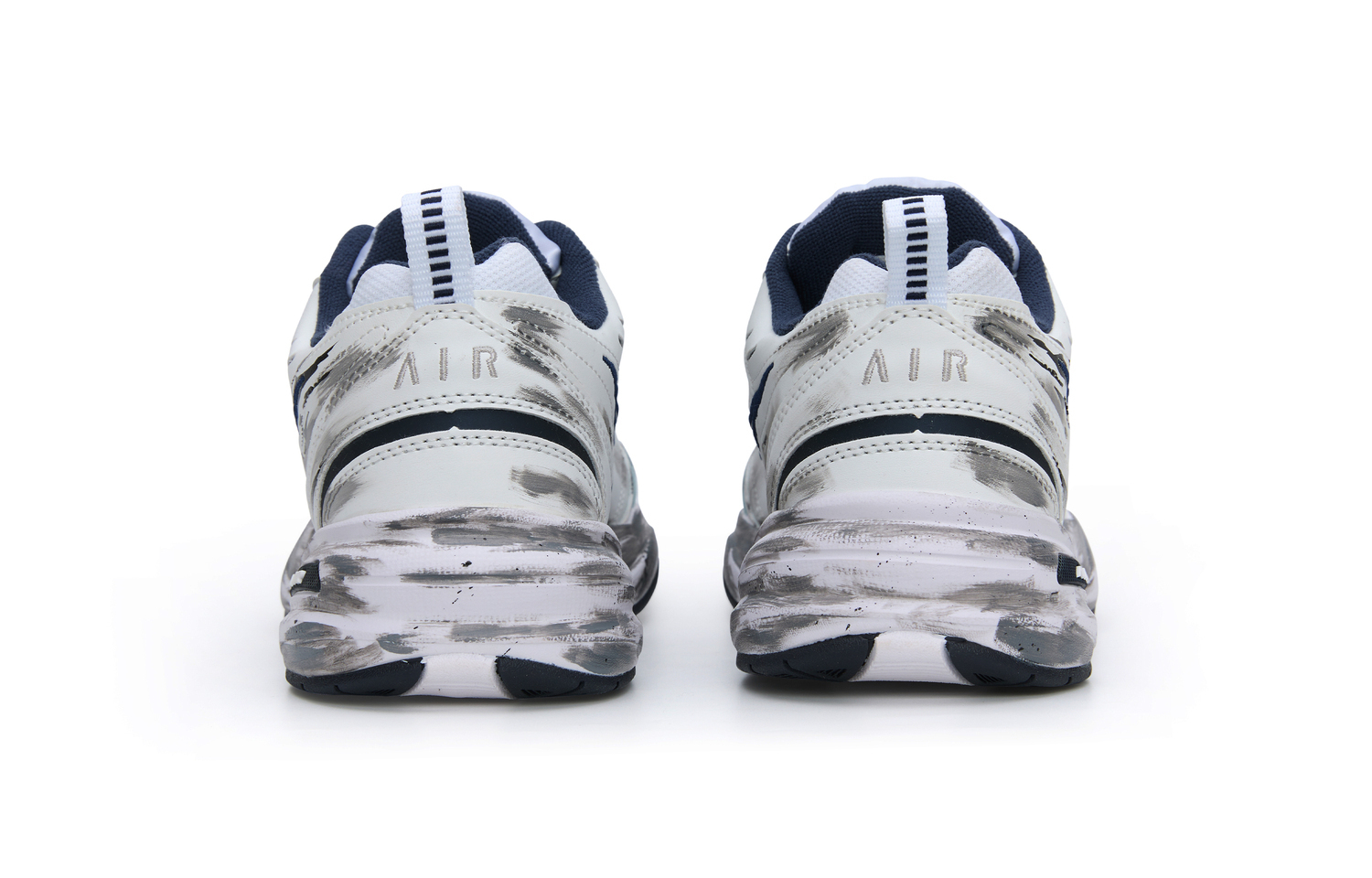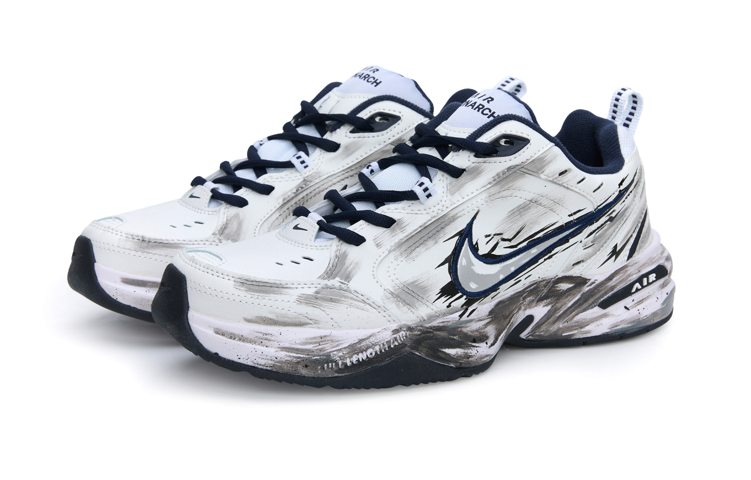 Эти кастомные кроссовки основаны на модели Nike Air Monarch 4 White Navy унисекс. Оригинальный дизайн кроссовок создан случайным образом. Вдохновением послужили быстро движущиеся частицы. Все изображения продукта взяты с оригинала; возможны незначительные различия в цвете из-за особенностей окружающей среды и особенностей экипировки.