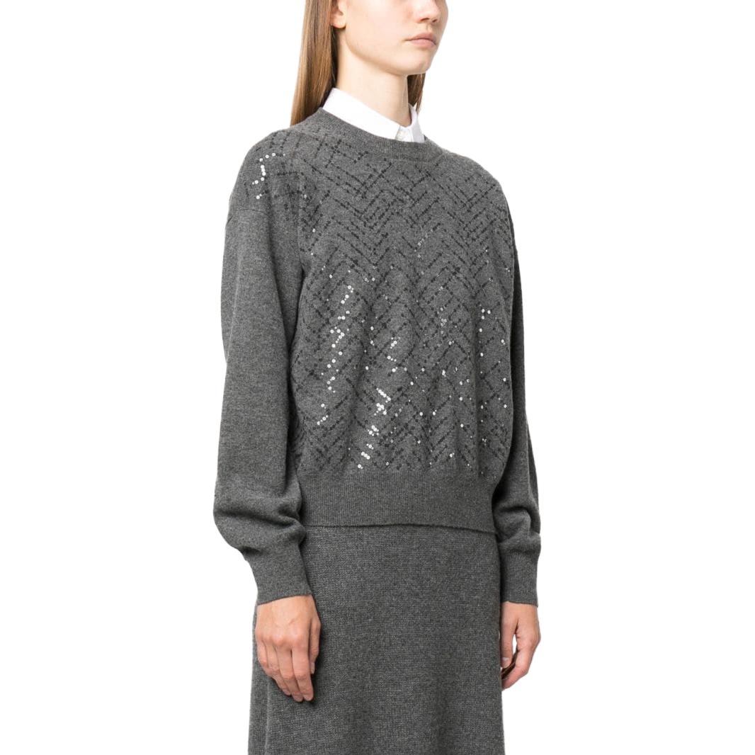 Джемпер из шерсти с пайетками Brunello Cucinelli, темно-серый