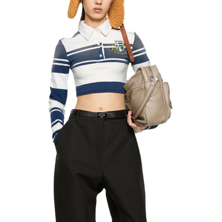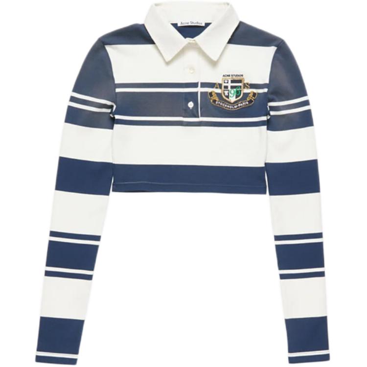 Кроп поло с длинными рукавами Acne Studios, белый/темно-синий 46 128₽