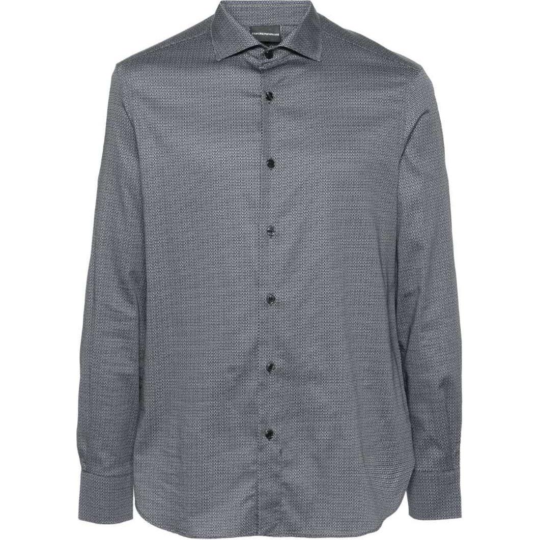 Геометрический принт поплиновая рубашка EMPORIO ARMANI, синий 14 895₽