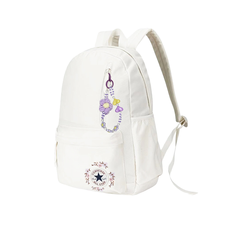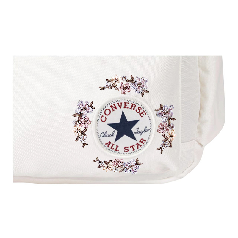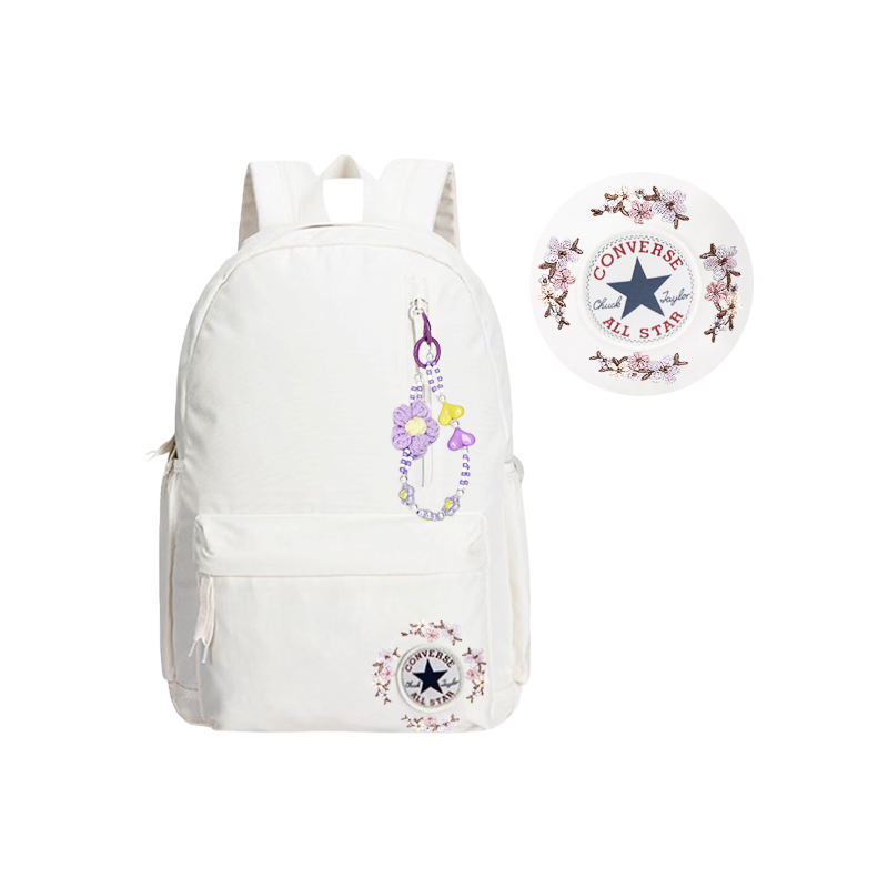 Эта сумка, выполненная по индивидуальному заказу, изначально представляет собой женский рюкзак Converse среднего размера белого цвета с большой вместимостью и застежкой-молнией, изготовленный из полиэстера (полиэстерного волокна). Артикул основного товара - CV2413026PS-003, а артикул дополнительного товара - CV2413026PS-003_DS. Название «Little Vanilla» происходит от свежего, исцеляющего и нежного образа ванили, что глубоко перекликается со стилем сумки. Эта сумка, созданная по мотивам классического рюкзака Converse, сохранила культовый логотип бренда в виде звезды, а нежная цветочная вышивка, словно соцветие ванили, окружает логотип, создавая естественную и освежающую атмосферу. Сумка также украшена фиолетовым бисером ручной работы (в форме цветов и сердечек), напоминающим игривые плоды на ванильных лозах, что добавляет нотку индивидуальности классическому и простому дизайну.
