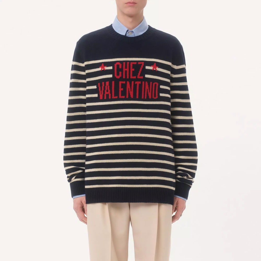 Свитер Striped Logo Detailed Crewneck Jumper Valentino, синий 289 298₽