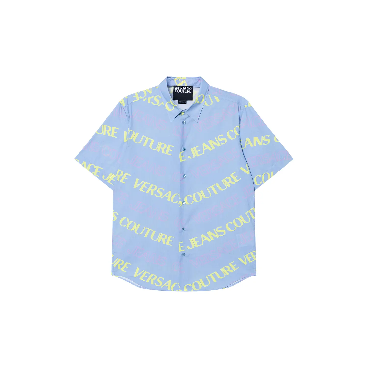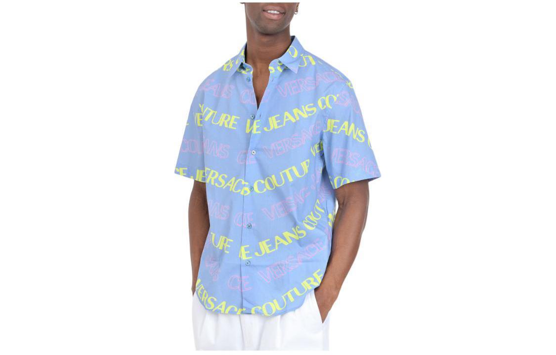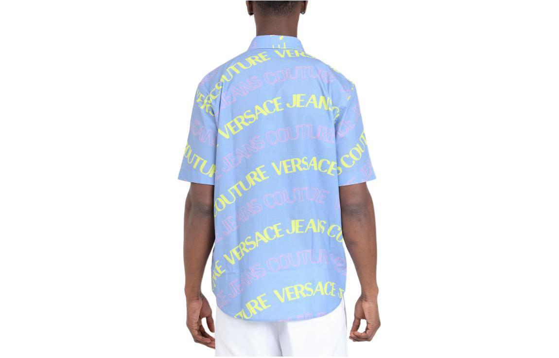 Рубашка с принтом Logo из хлопка VERSACE JEANS COUTURE, синий