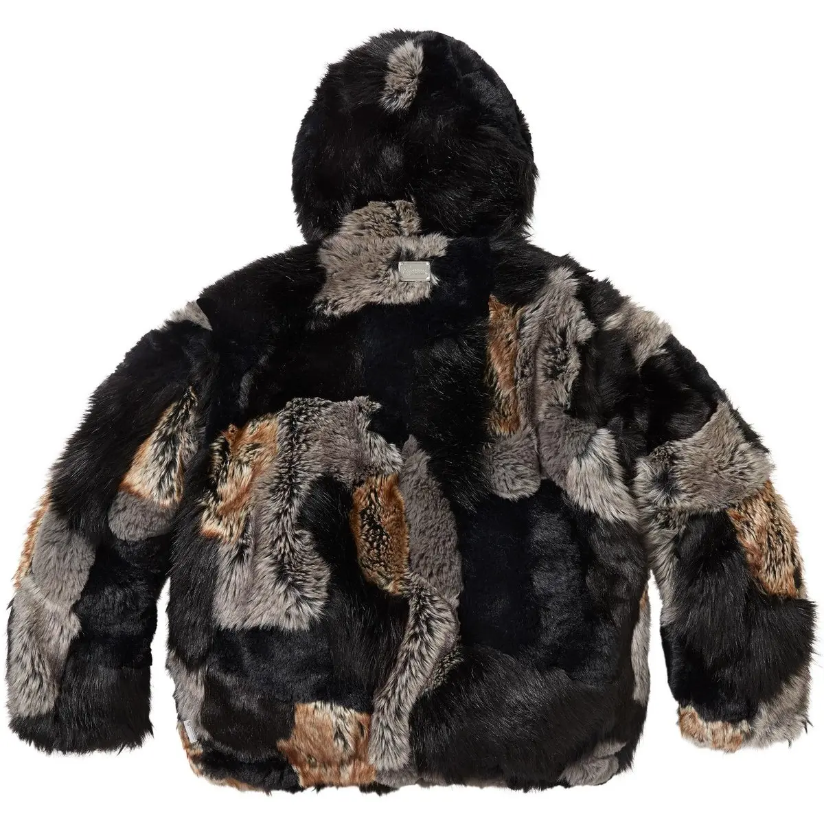 Куртка с капюшоном из искусственного меха patchwork windstopper унисекс Supreme, черный