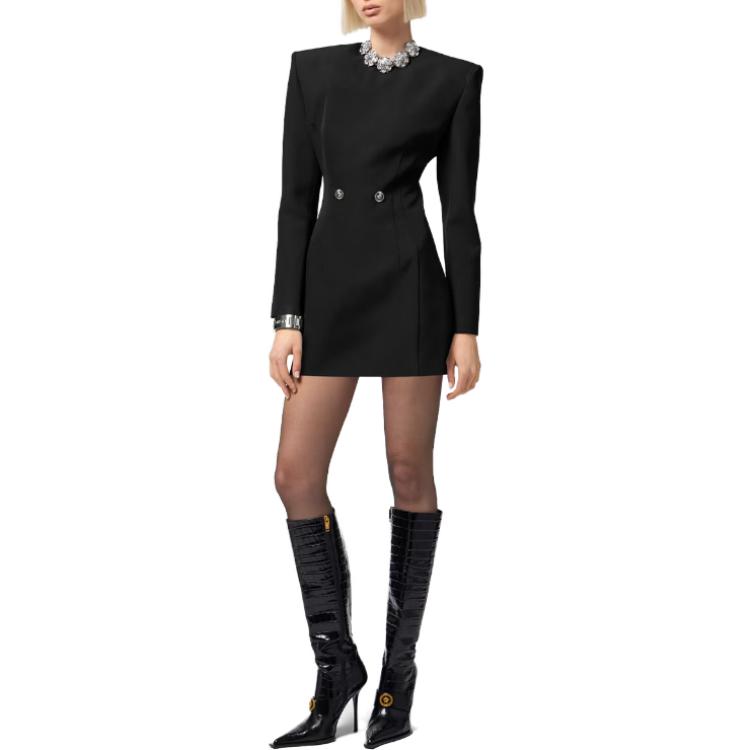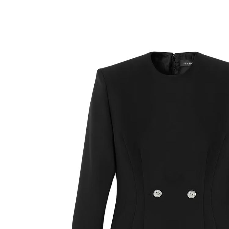 Пуговичная длинная платье с длинными рукавами VERSACE, черный