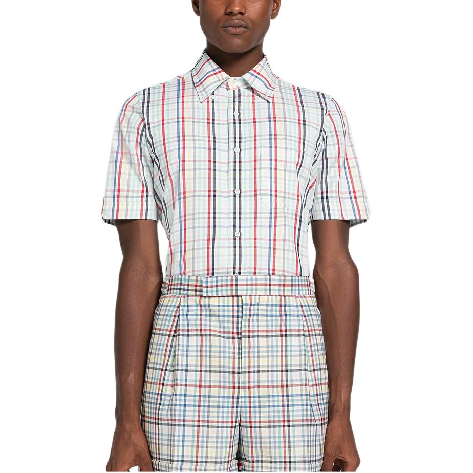 Клетчатая рубашка с коротким рукавом THOM BROWNE, мультиколор
