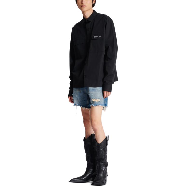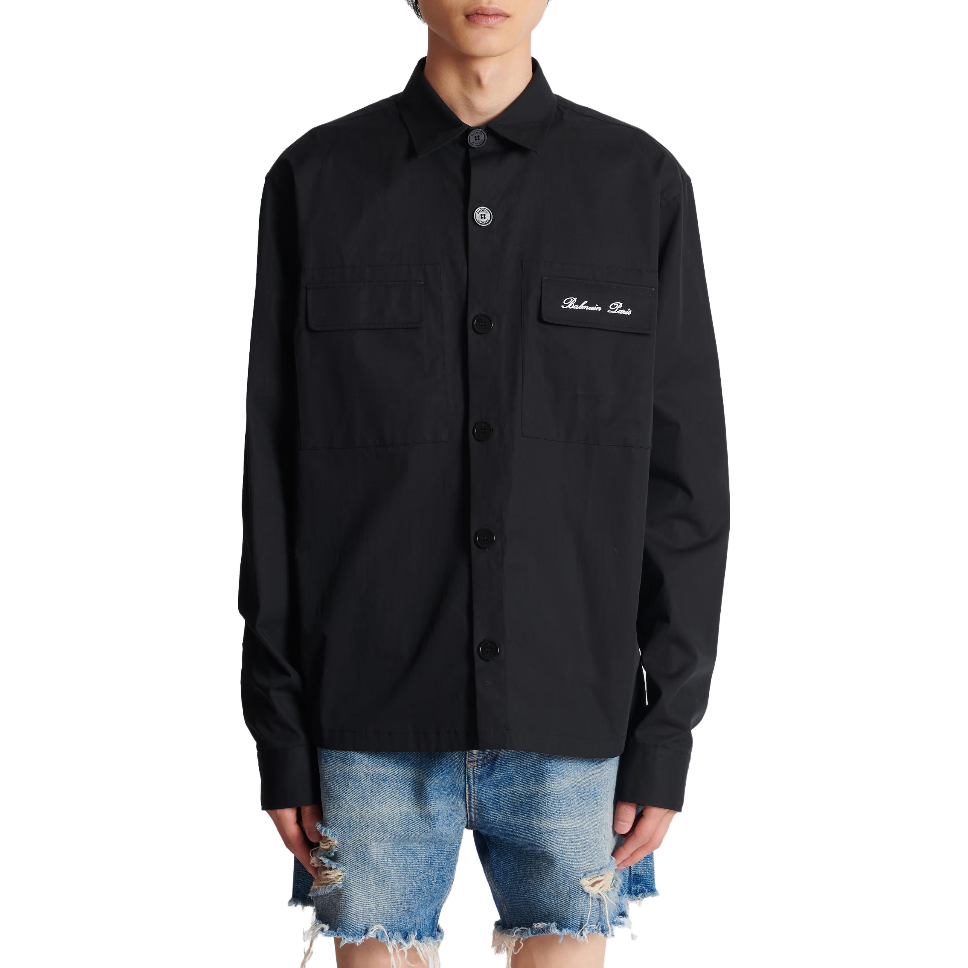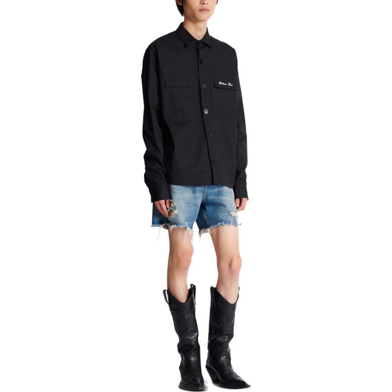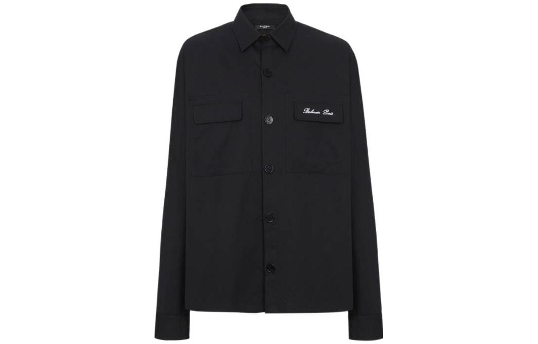 Рубашка с длинным рукавом и вышитым логотипом BALMAIN, черный
