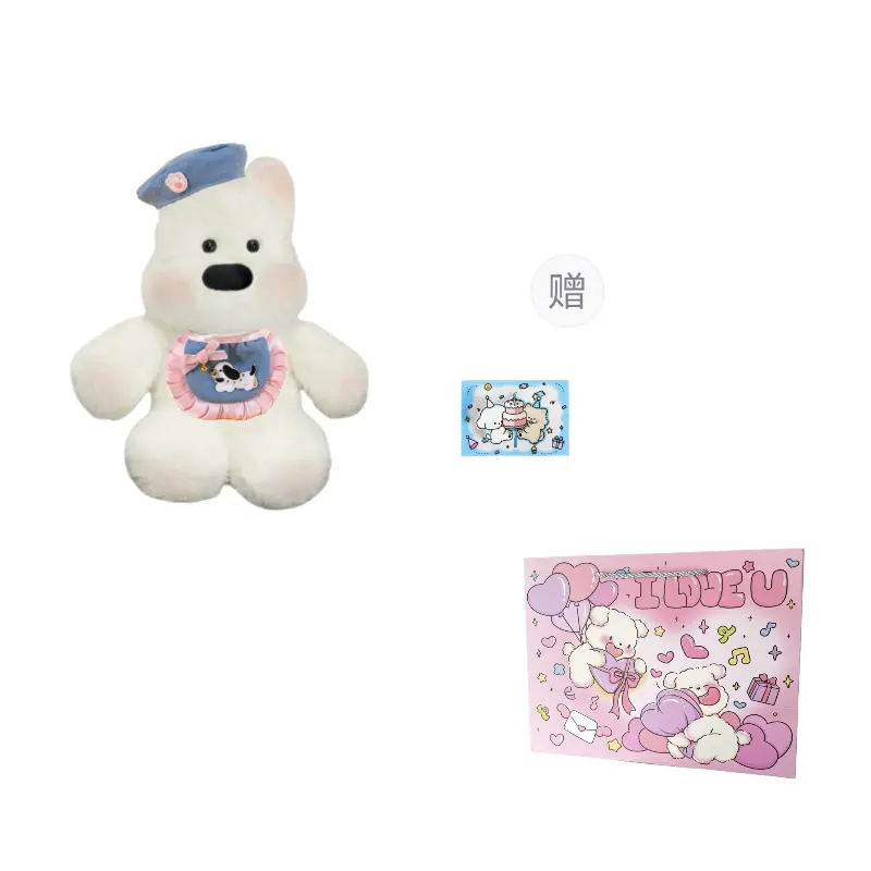 Название продукта: Джинсовый нагрудник для щенка с беретом (хайленд-уайт) - в комплекте с поздравительной открыткой в ​​виде щенка-торта