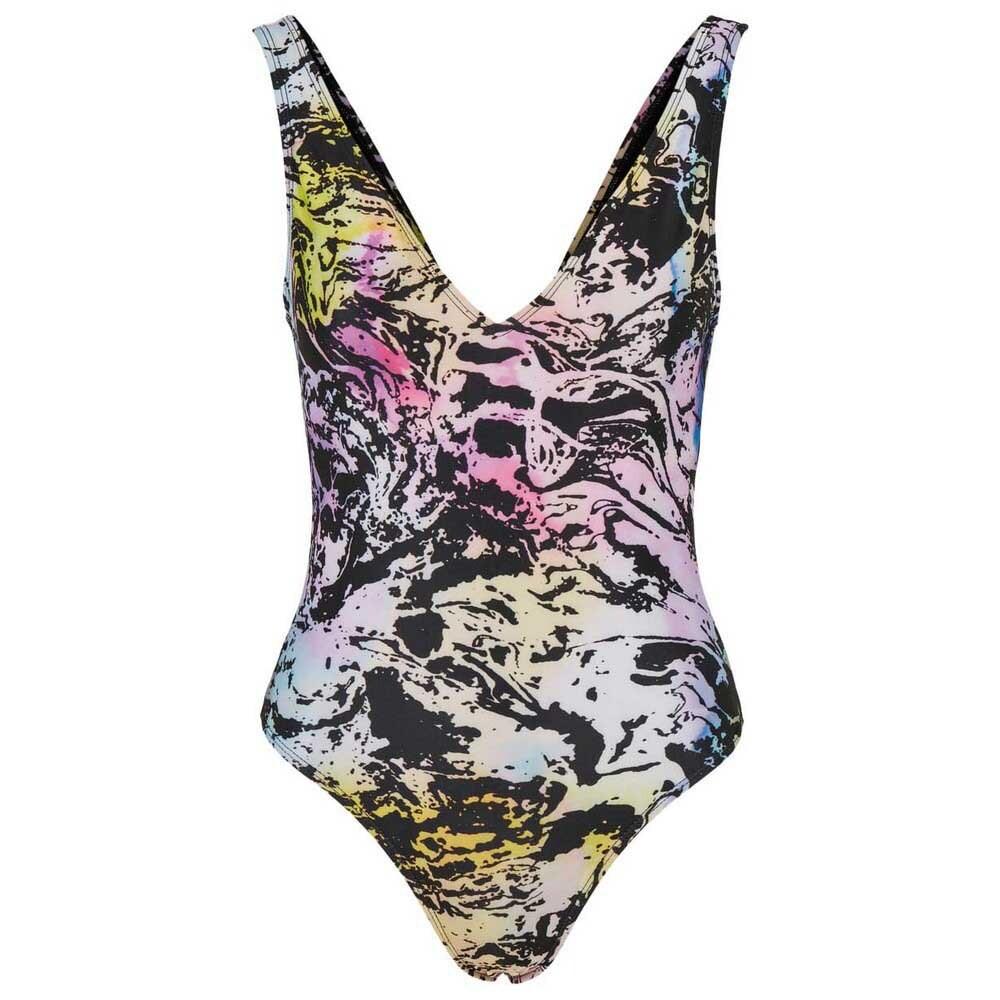 Этот женский купальник великолепного кроя и красочного абстрактного принта способен произвести впечатление с первого взгляда. Глубокое декольте имеет V-образную форму и сопровождается очень глубоким вырезом сзади. Высокий крой штанин идеально вписывается в дизайн. Женский купальник изготовлен из экологически чистого переработанного полиэстера и эластана.