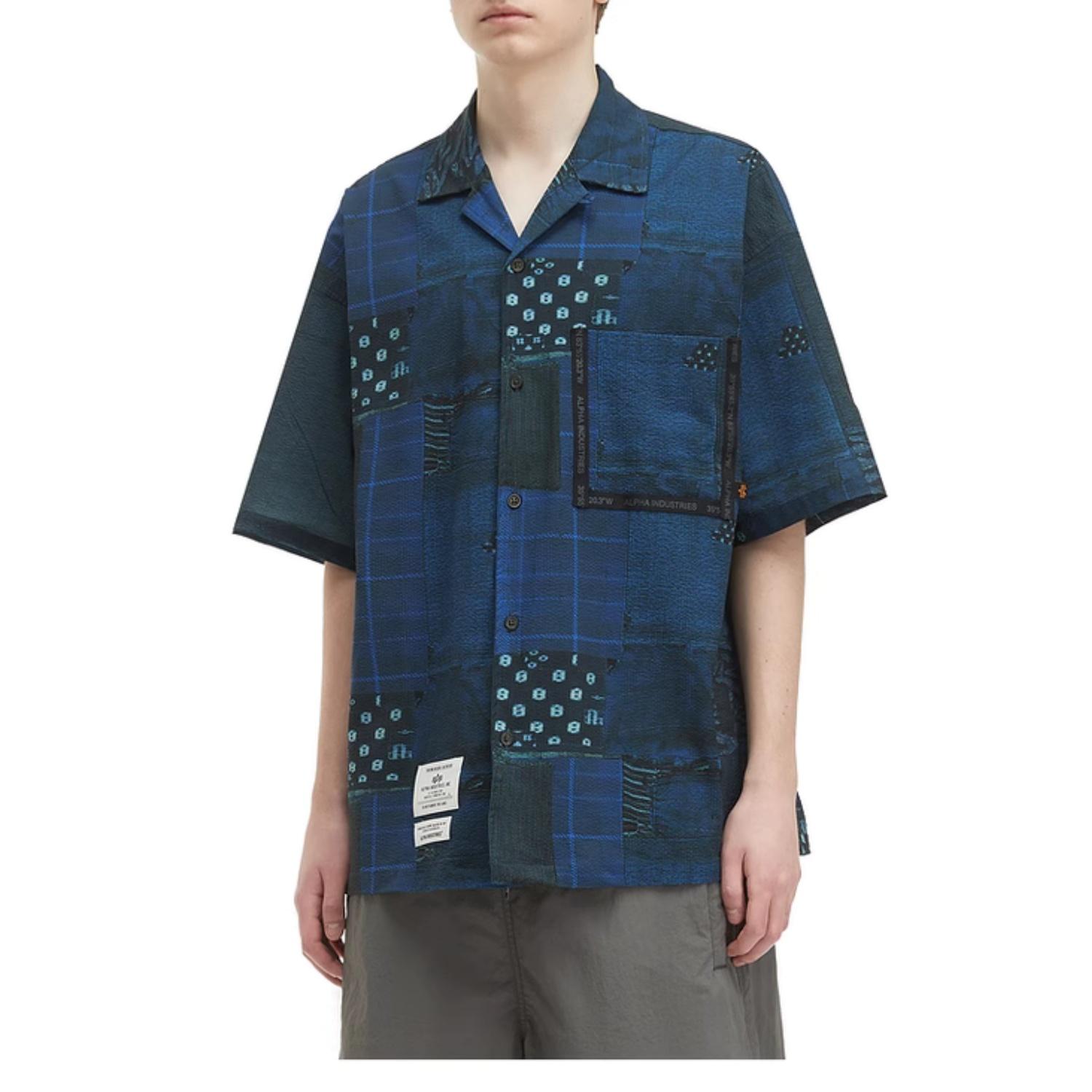 Рубашка с пэчворк принтом и панелями Alpha Industries, синий 7 314₽