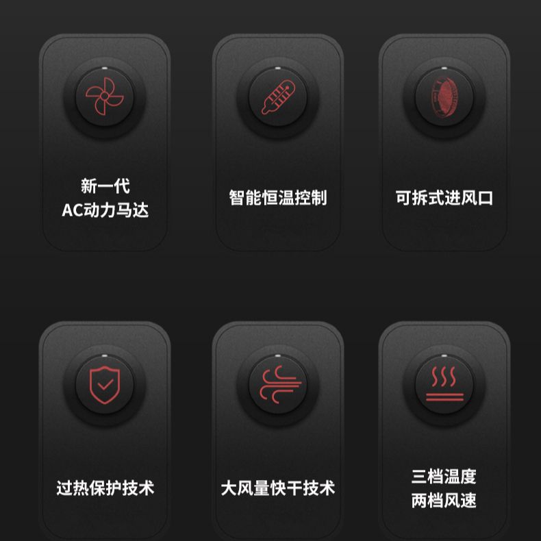 Фен холодный и горячий воздух High Power, Strong Airflow Quick Dry RD2272 SID, черный 2 247₽