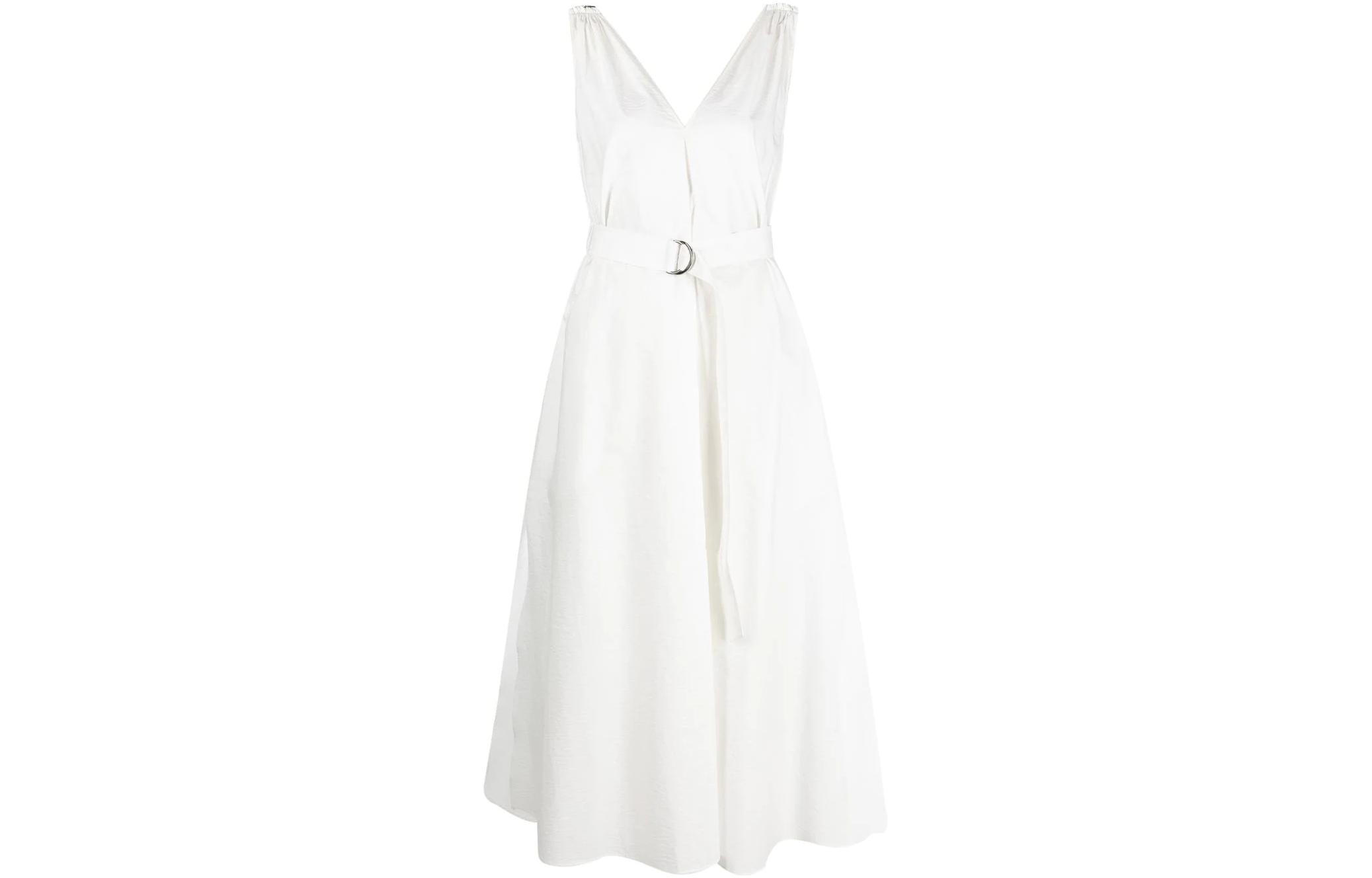 Поясное платье миди с плиссировкой Brunello Cucinelli, белый 149 909₽