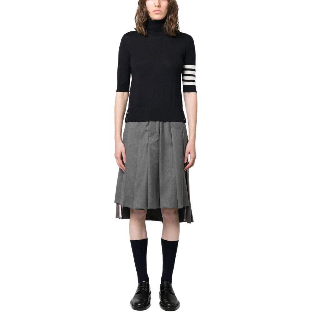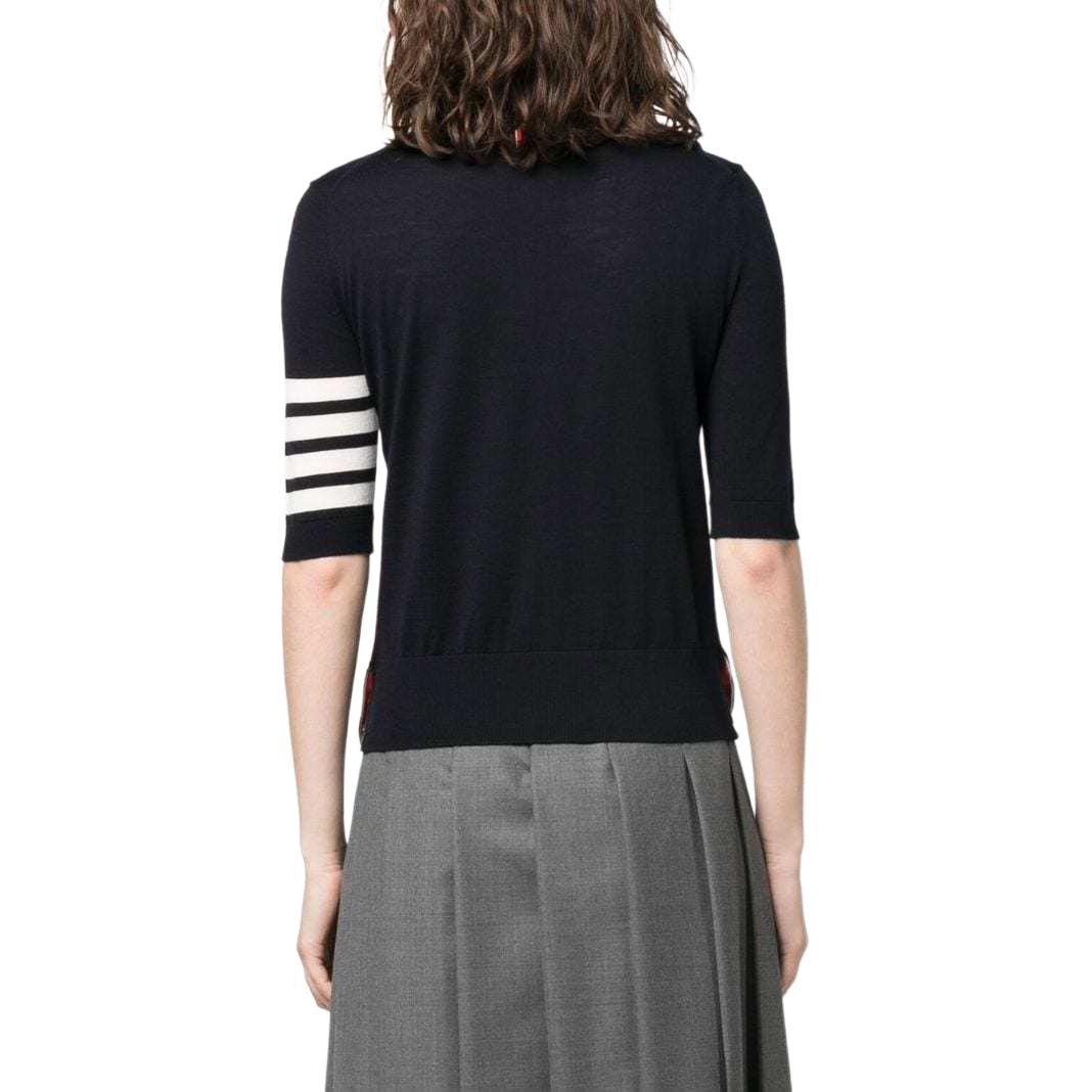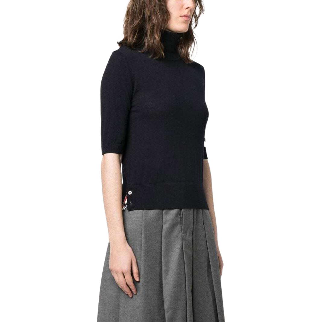 Вязаный свитер с воротником-стойкой THOM BROWNE, темно-синий