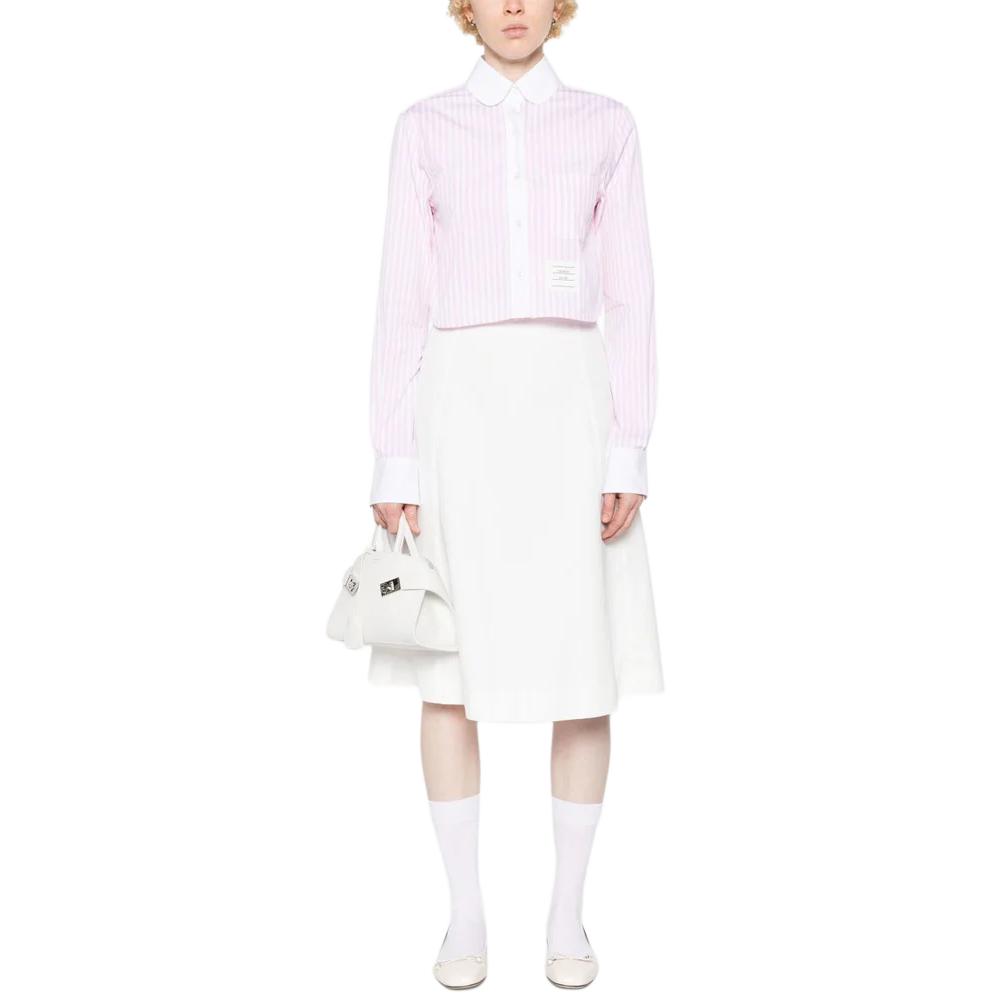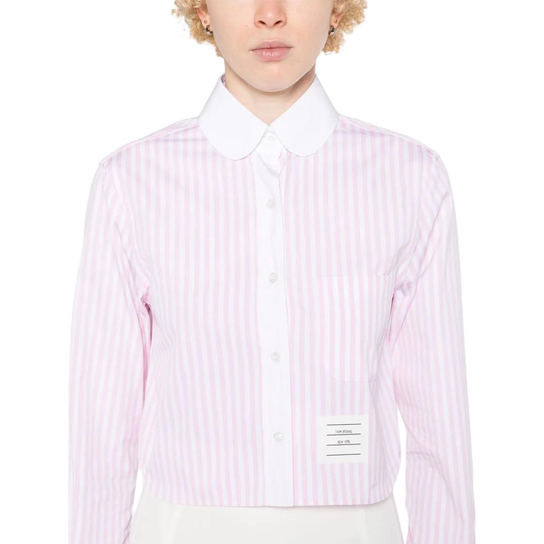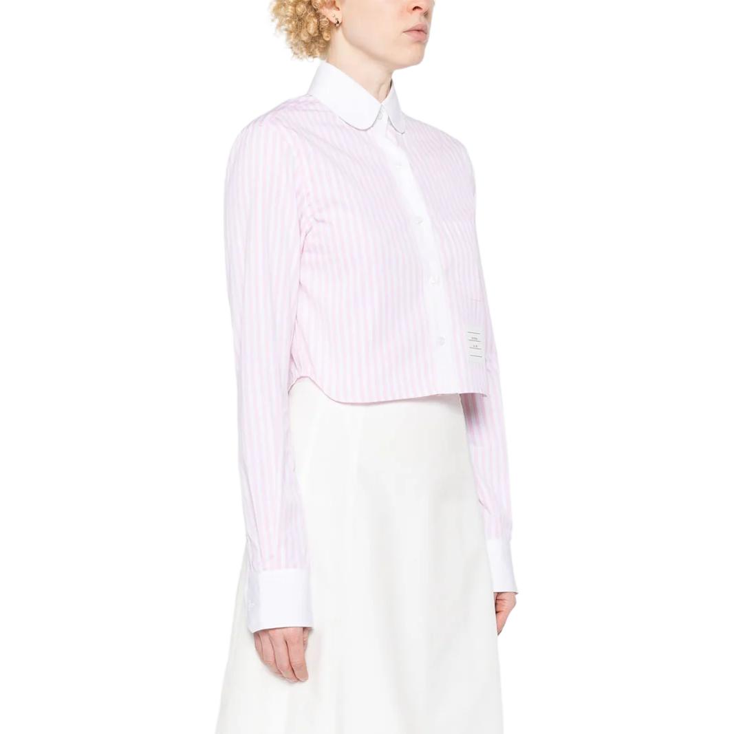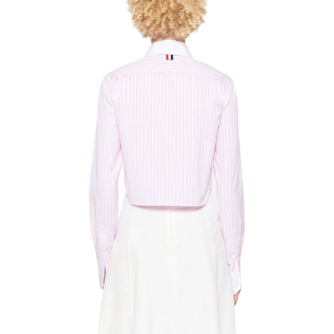 Полосатая хлопковая укороченная рубашка THOM BROWNE, розовый