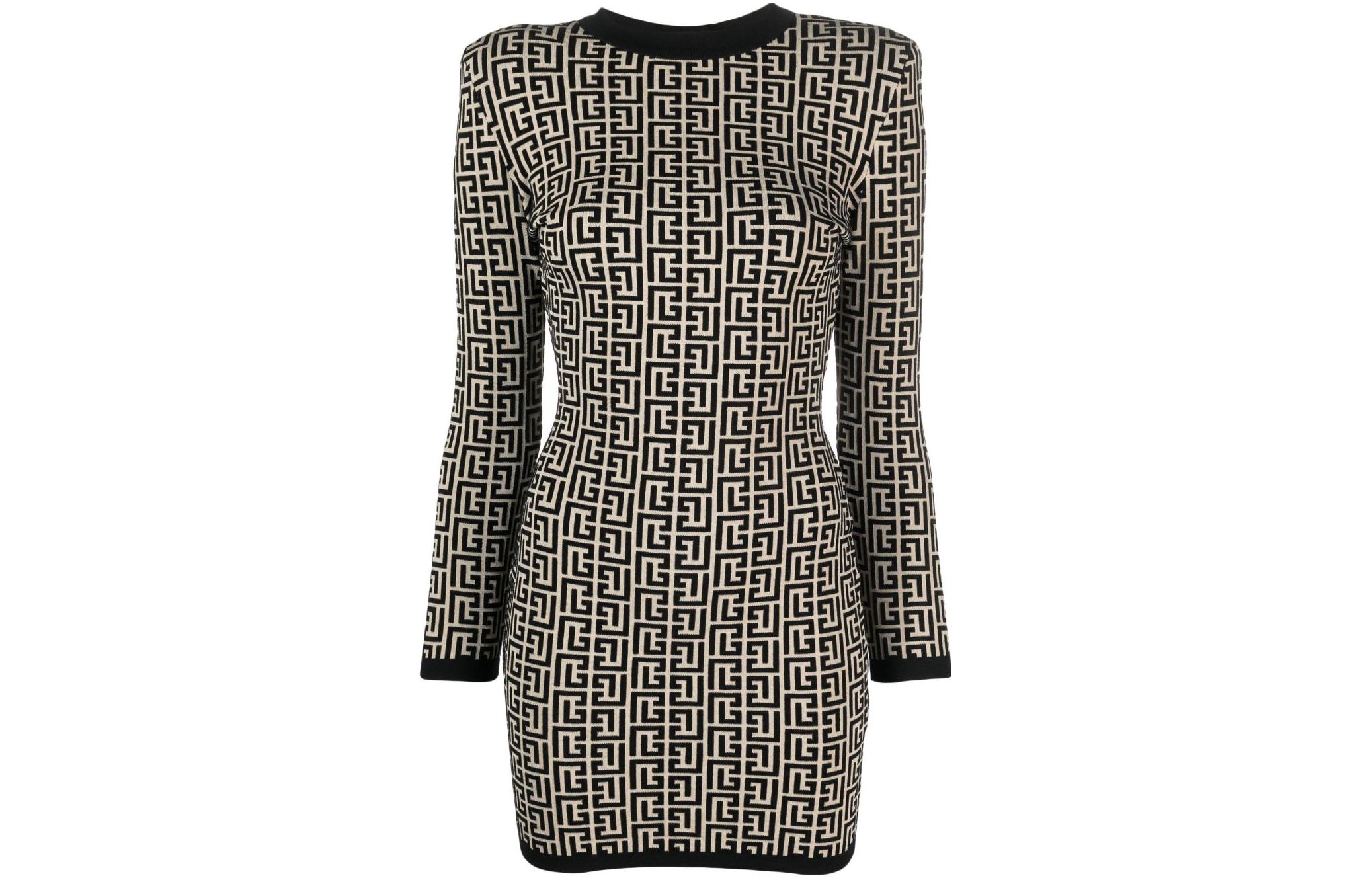 Платье из шерстяной ткани с принтом Monogram BALMAIN, черный 83 000₽
