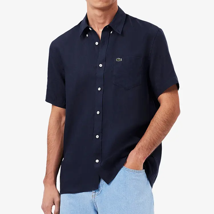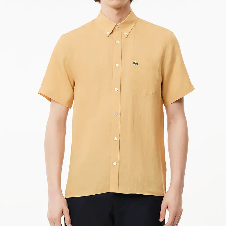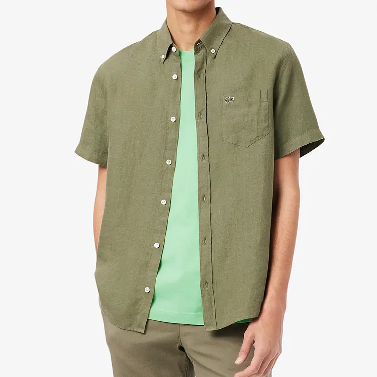 Рубашка с коротким рукавом и вышитым логотипом LACOSTE, хаки