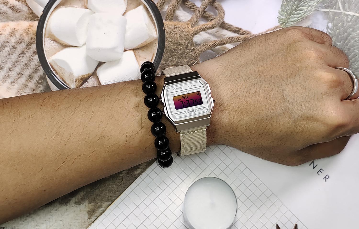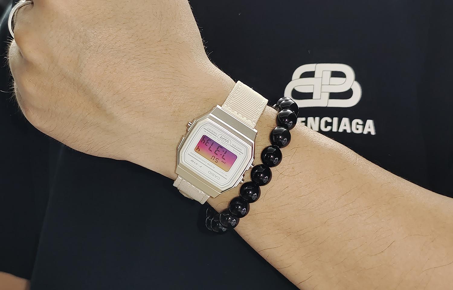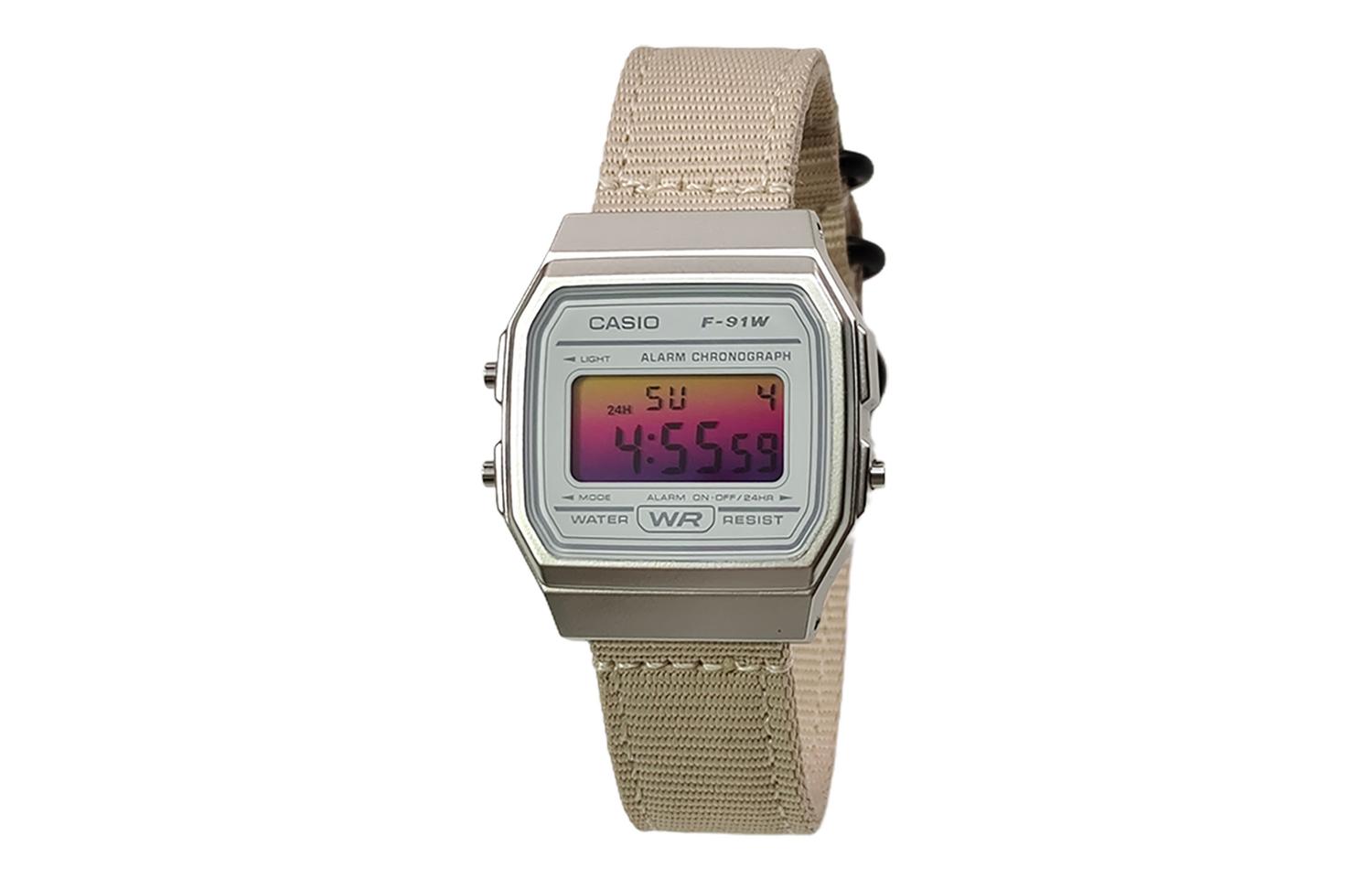 CASIO Кварцевые часы с нейлоновым ремешком, белый циферблат