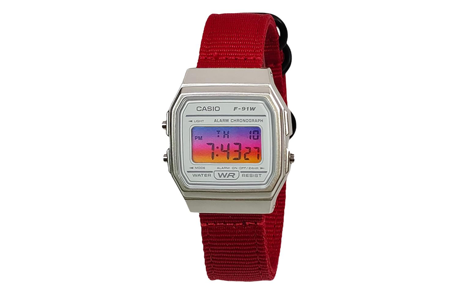 CASIO Кварцевые часы с нейлоновым ремешком, белый циферблат