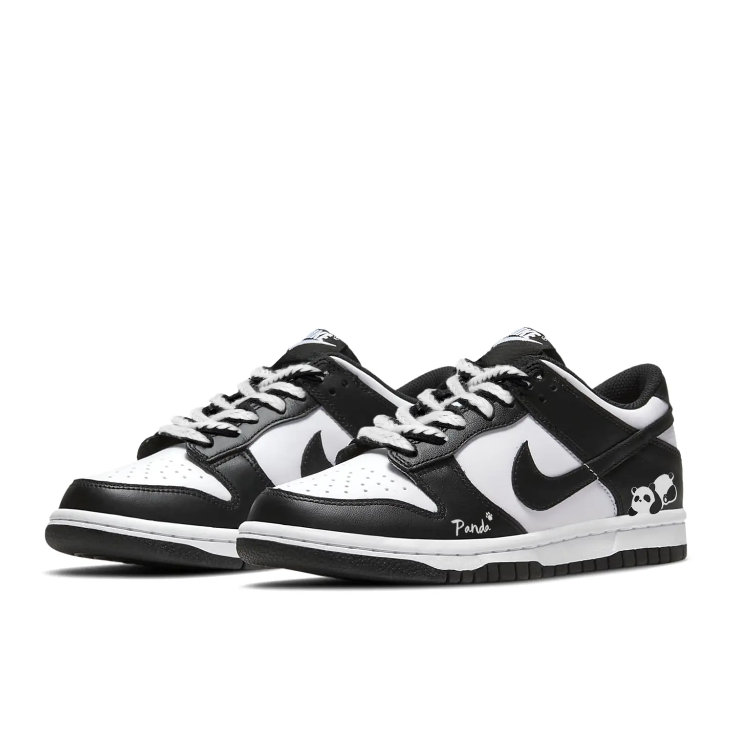 Эти кастомные кроссовки основаны на оригинальной модели Nike Dunk "Black" с основным артикулом CW1590-100 и дополнительным артикулом DD1391-100. Они украшены дизайном с изображением панды. Это милый, милый, простой, модный ретро-стиль, амортизирующий, износостойкий, нескользящий, с низким верхом, подходящий для подростков. Этот дизайн вдохновлен пандами.