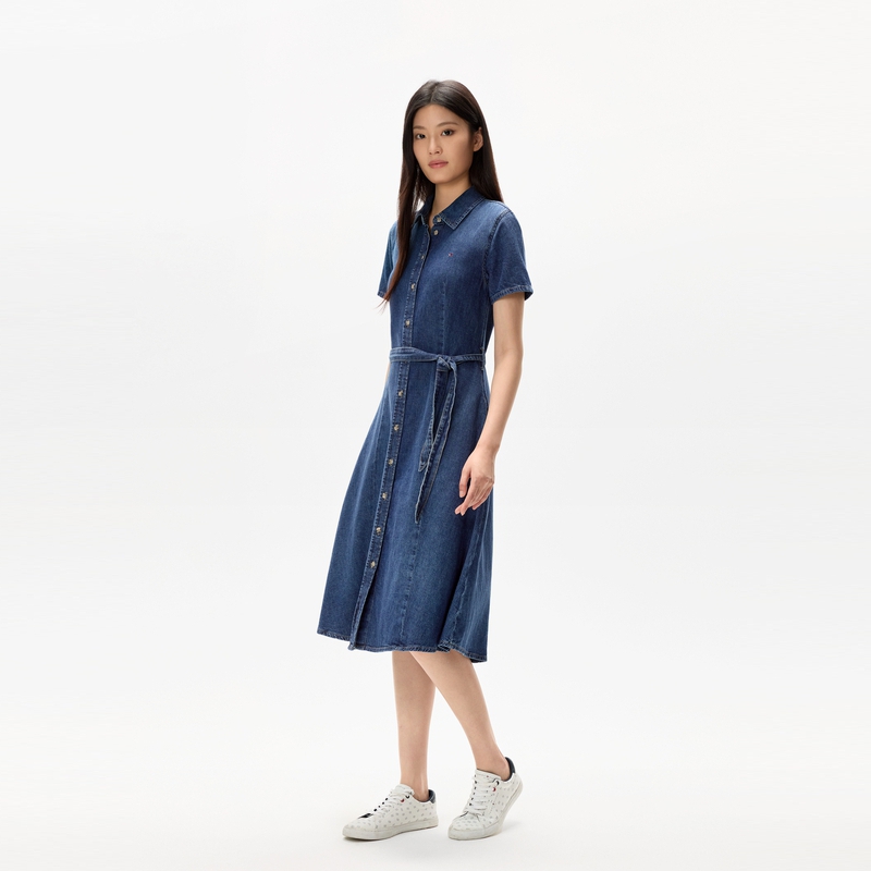 Tommy Hilfiger Женское платье с коротким рукавом деним blue