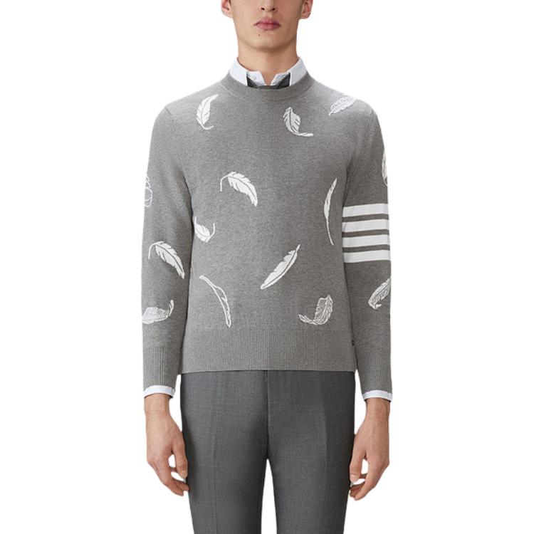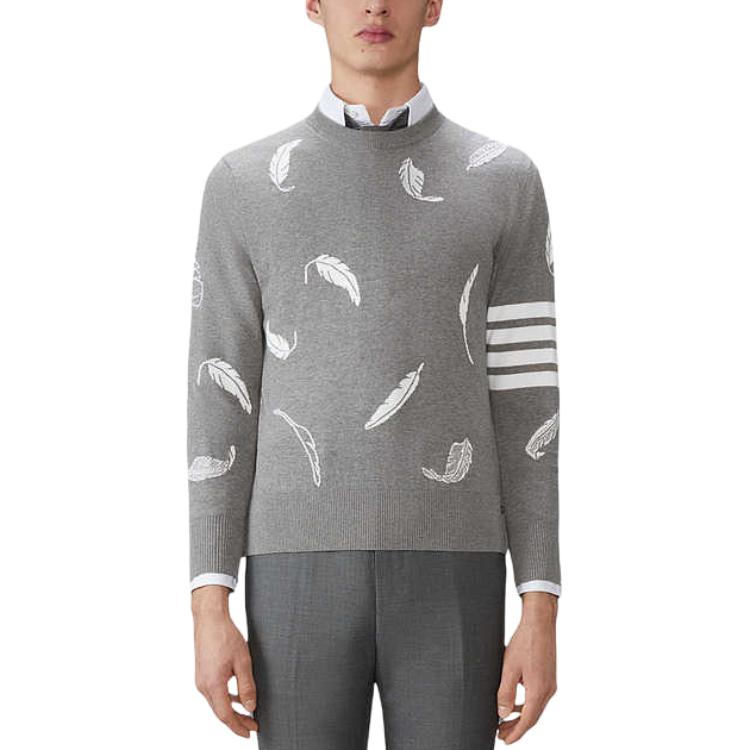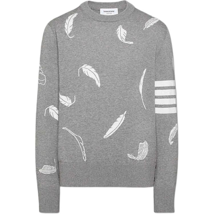Свитер Cotton с интарсией Feather THOM BROWNE, светло-серый 110 843₽
