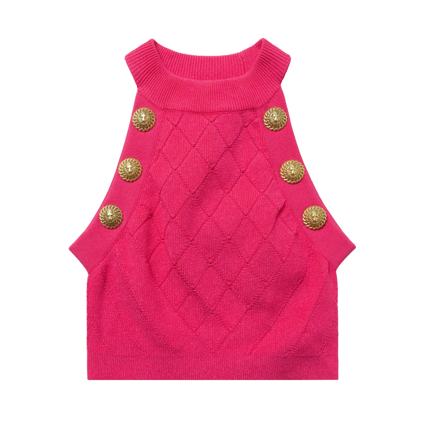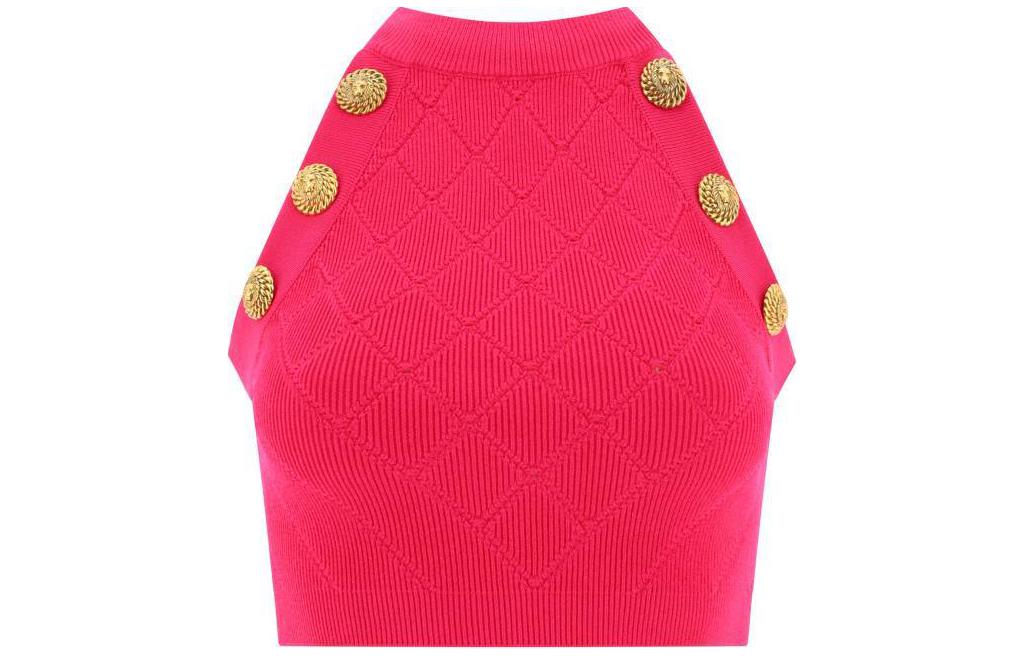 Топ-майка кроп с пуговицами Lion Head BALMAIN, ярко-розовый