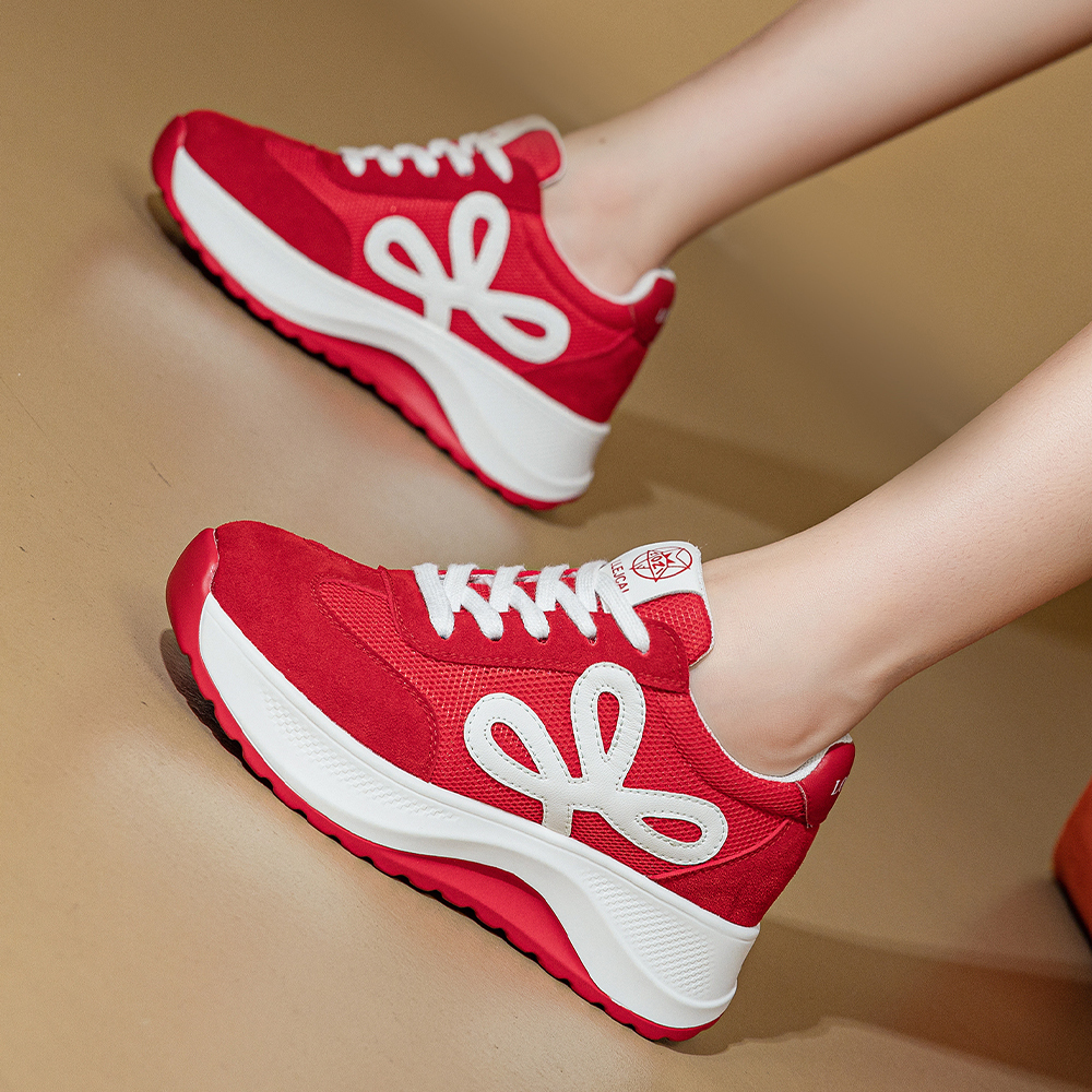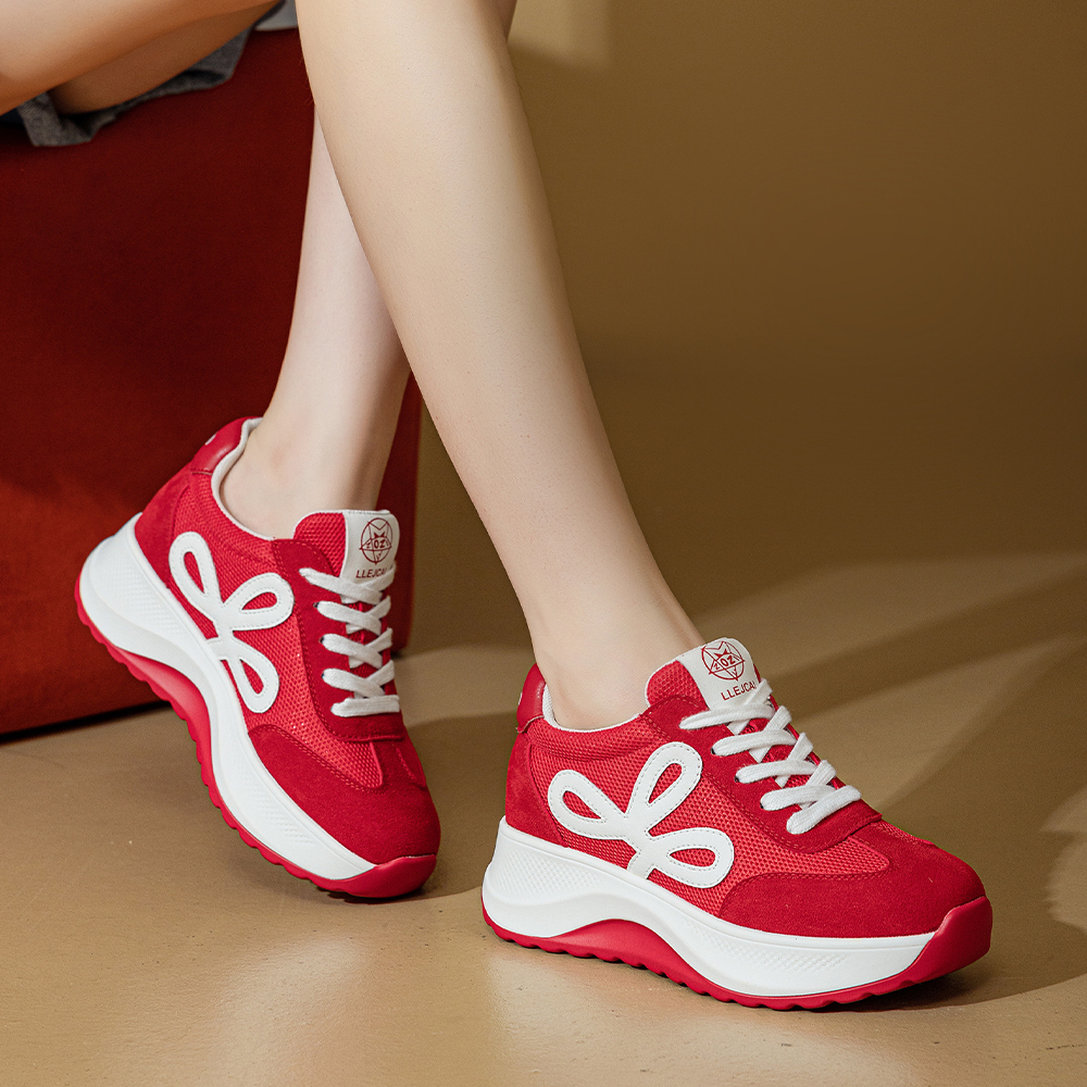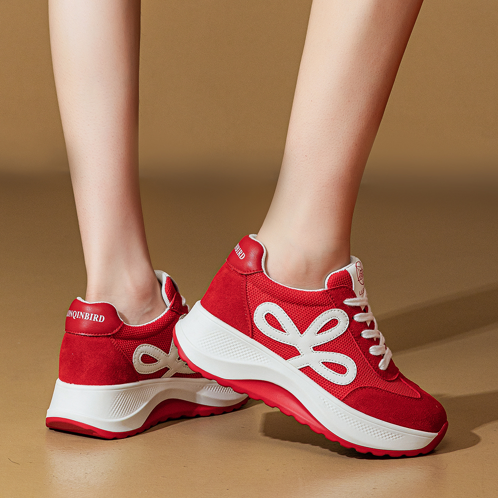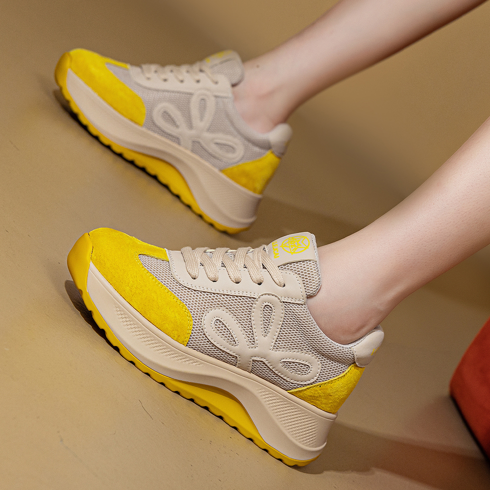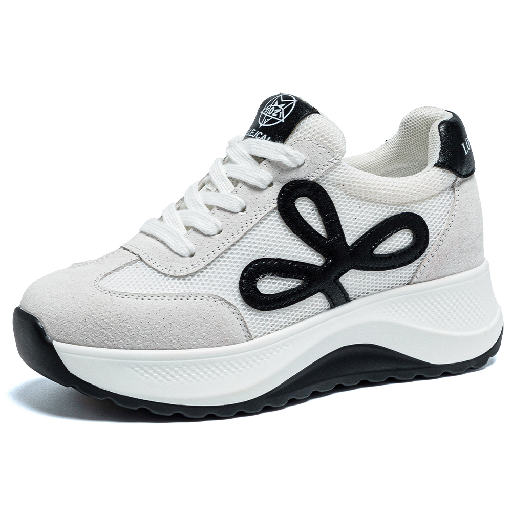 Дышащие утолщенные кроссовки на платформе для увеличения роста Low Top POOQ, бежевый