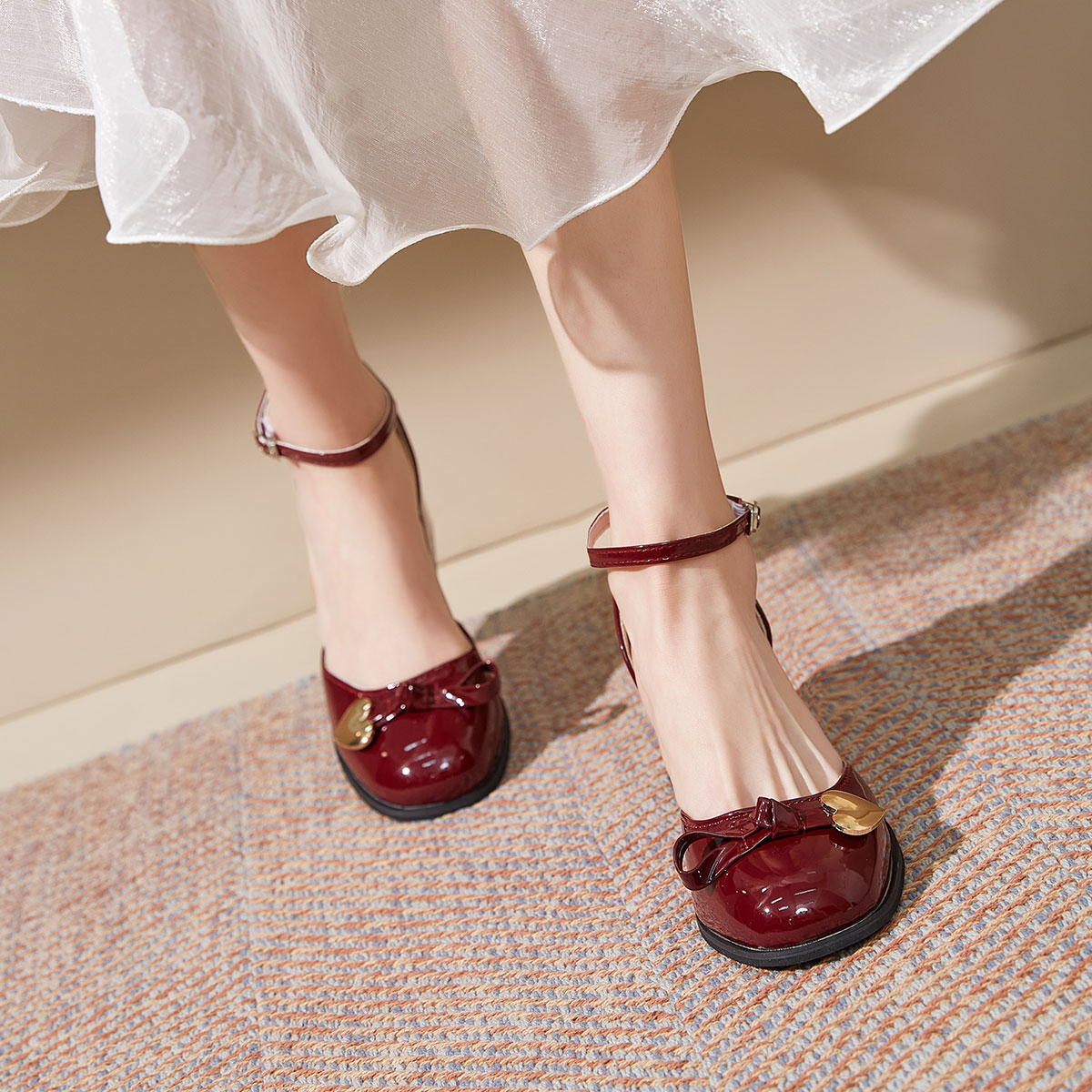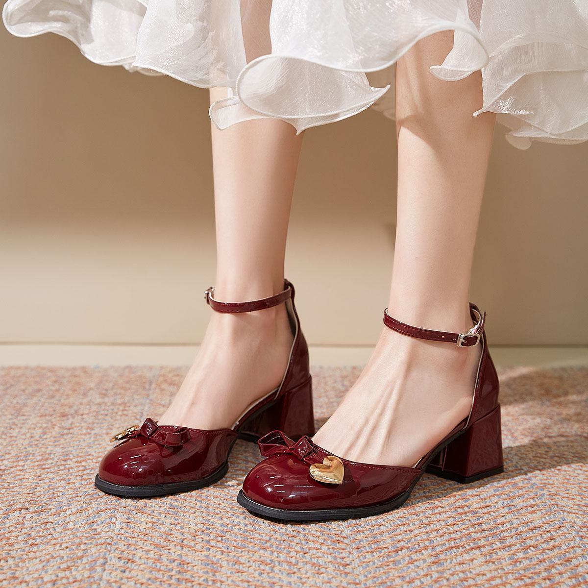 Туфли Mary Jane Chunky Heel High Heels Women's TAOLEI, Ecru