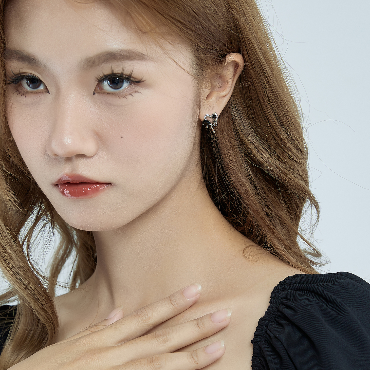 Цвет: 【Подарочная коробка】Серьги с каплями воды и черными драгоценными камнями
