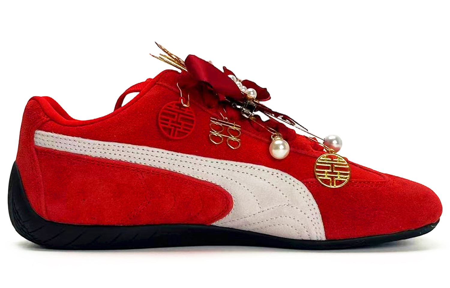 Эти кроссовки, изготовленные на заказ, созданы на основе кроссовок PUMA Speedcat Go OG - прочных кроссовок для тренировок с низким верхом. Оригинальный дизайн кроссовок выбран случайным образом. Дизайн вдохновлен традиционным китайским свадебным платьем «Сюхэ». На изображении представлен реальный продукт; цвет и рисунок могут незначительно отличаться. Все кроссовки, изготовленные на заказ, изготавливаются вручную, и каждая пара будет иметь небольшие отличия.