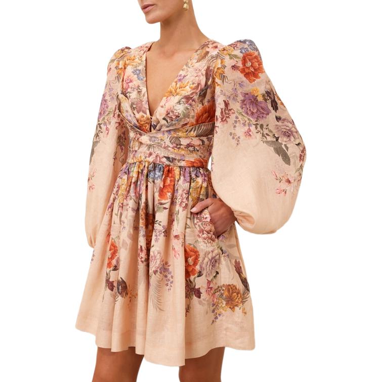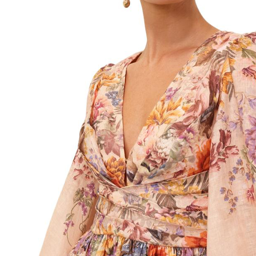 Zimmermann Длинное платье с длинными рукавами женское peach