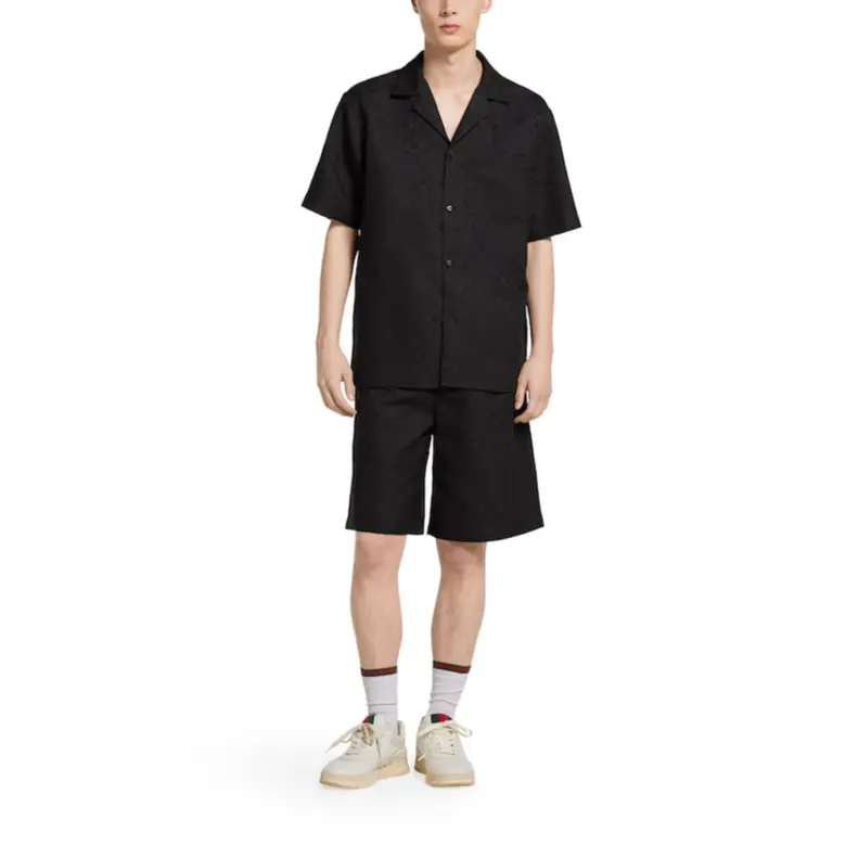 Рубашка Gg Canvas Linen Blend в стиле боулинг GUCCI, черный