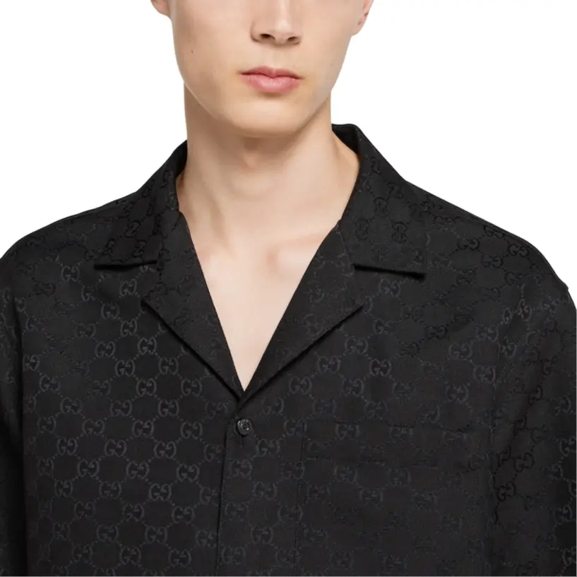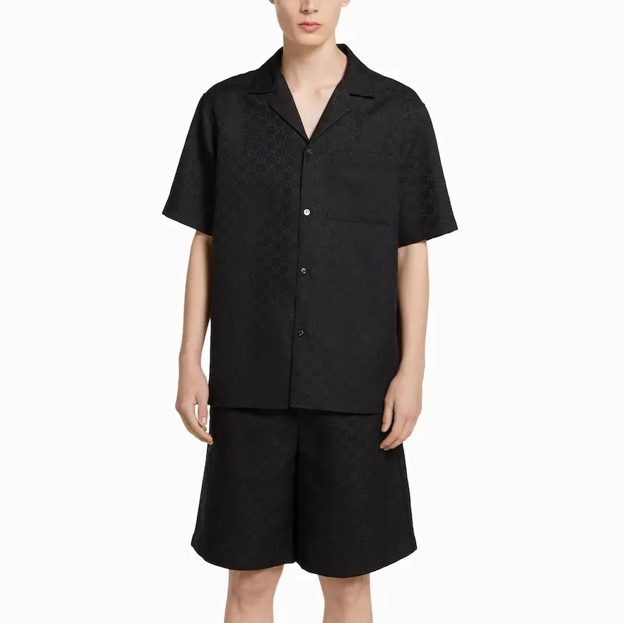 Рубашка Gg Canvas Linen Blend в стиле боулинг GUCCI, черный 171 663₽