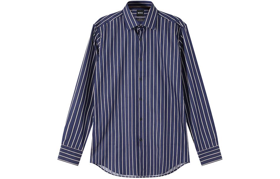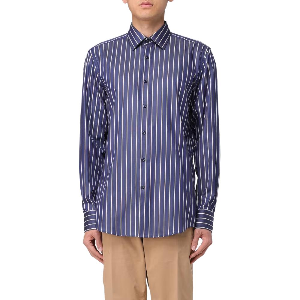 Полосатая рубашка с фигурным подолом HUGO BOSS, темно-синий
