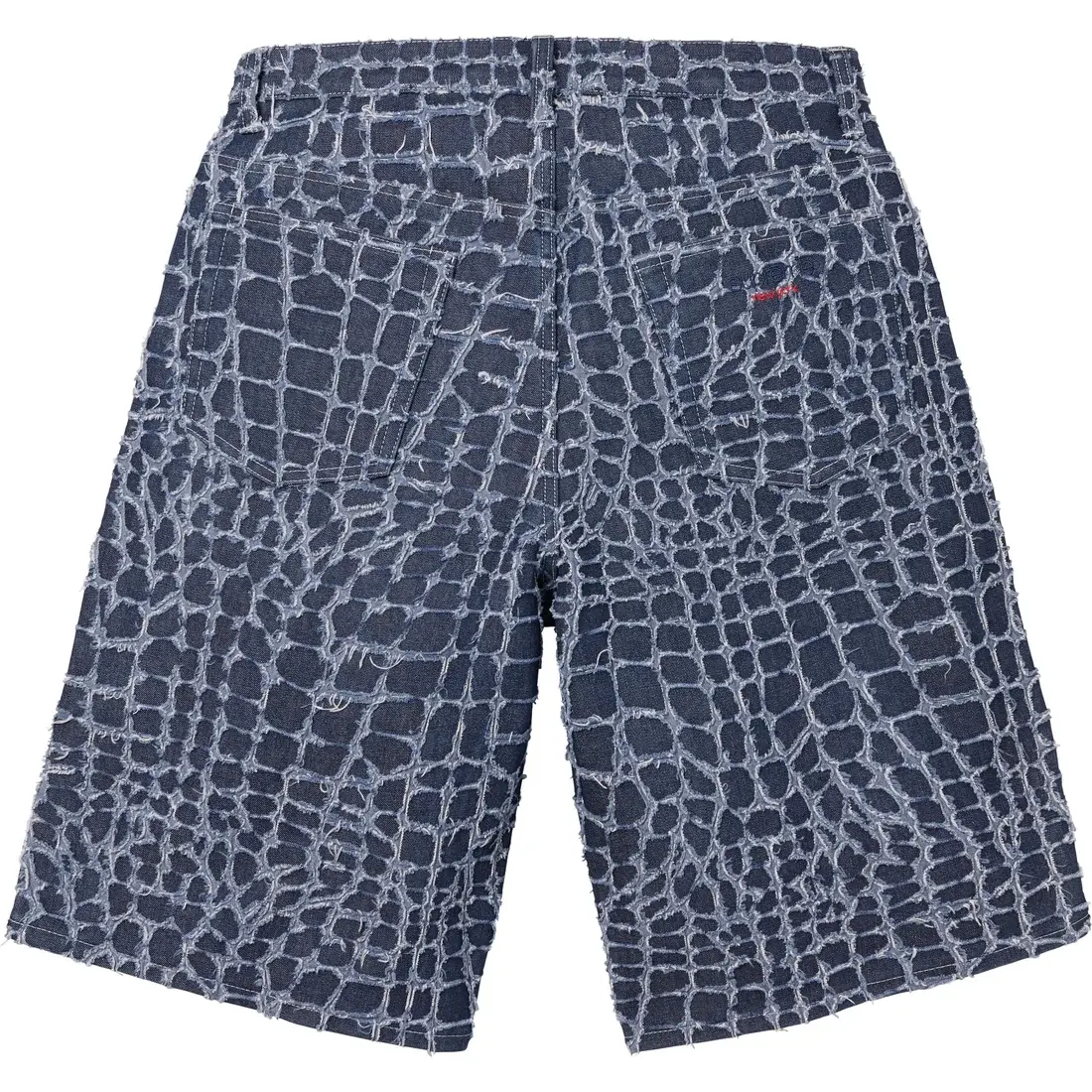 Потертые крокодиловые джинсовые шорты baggy Supreme, черный